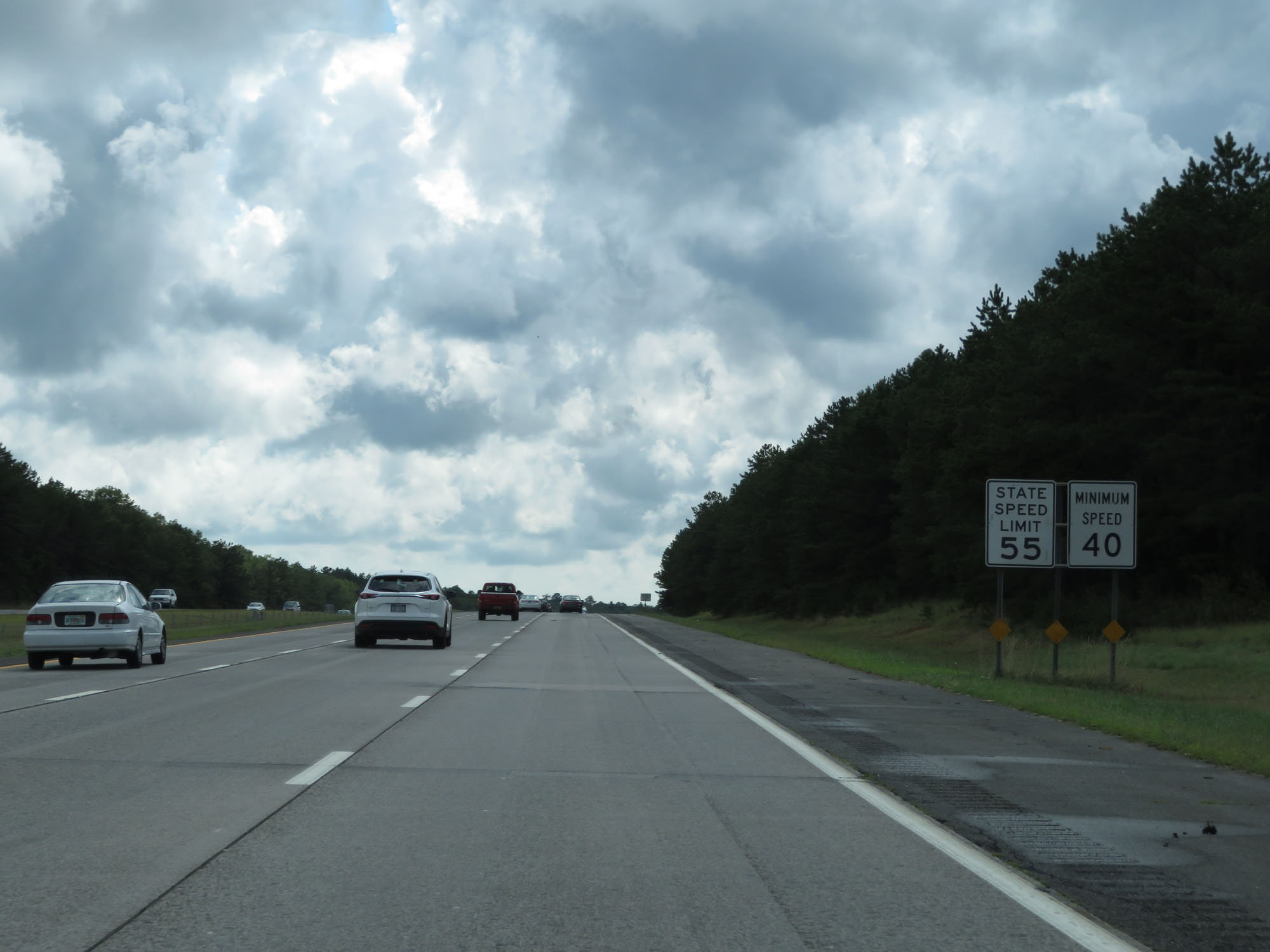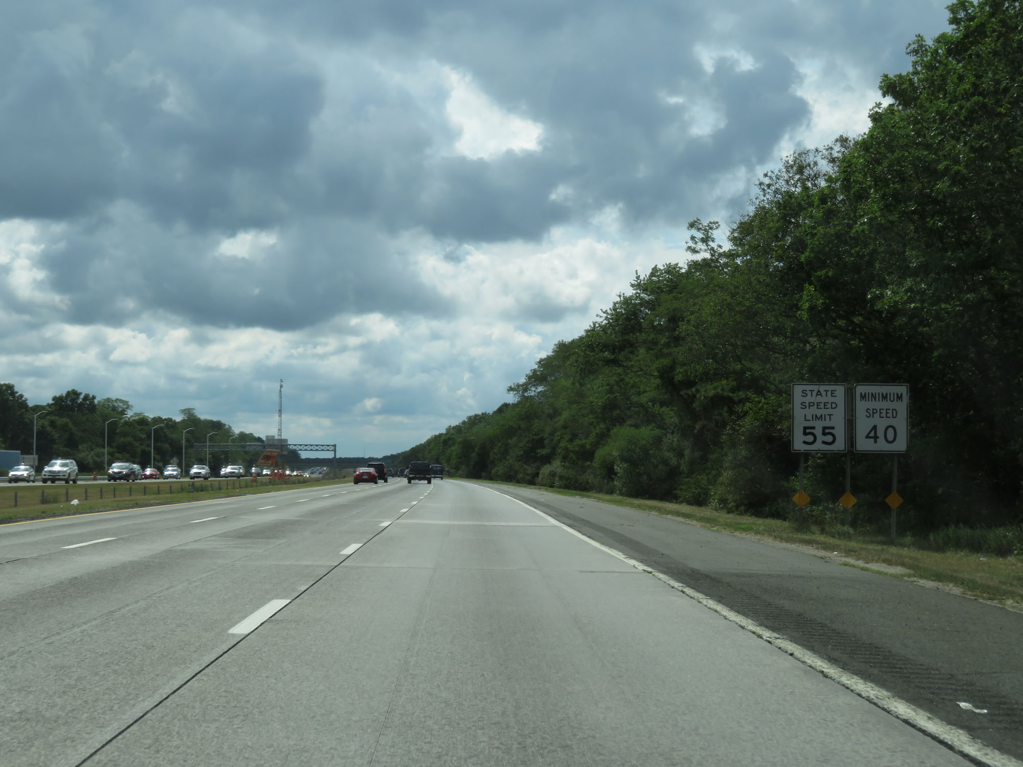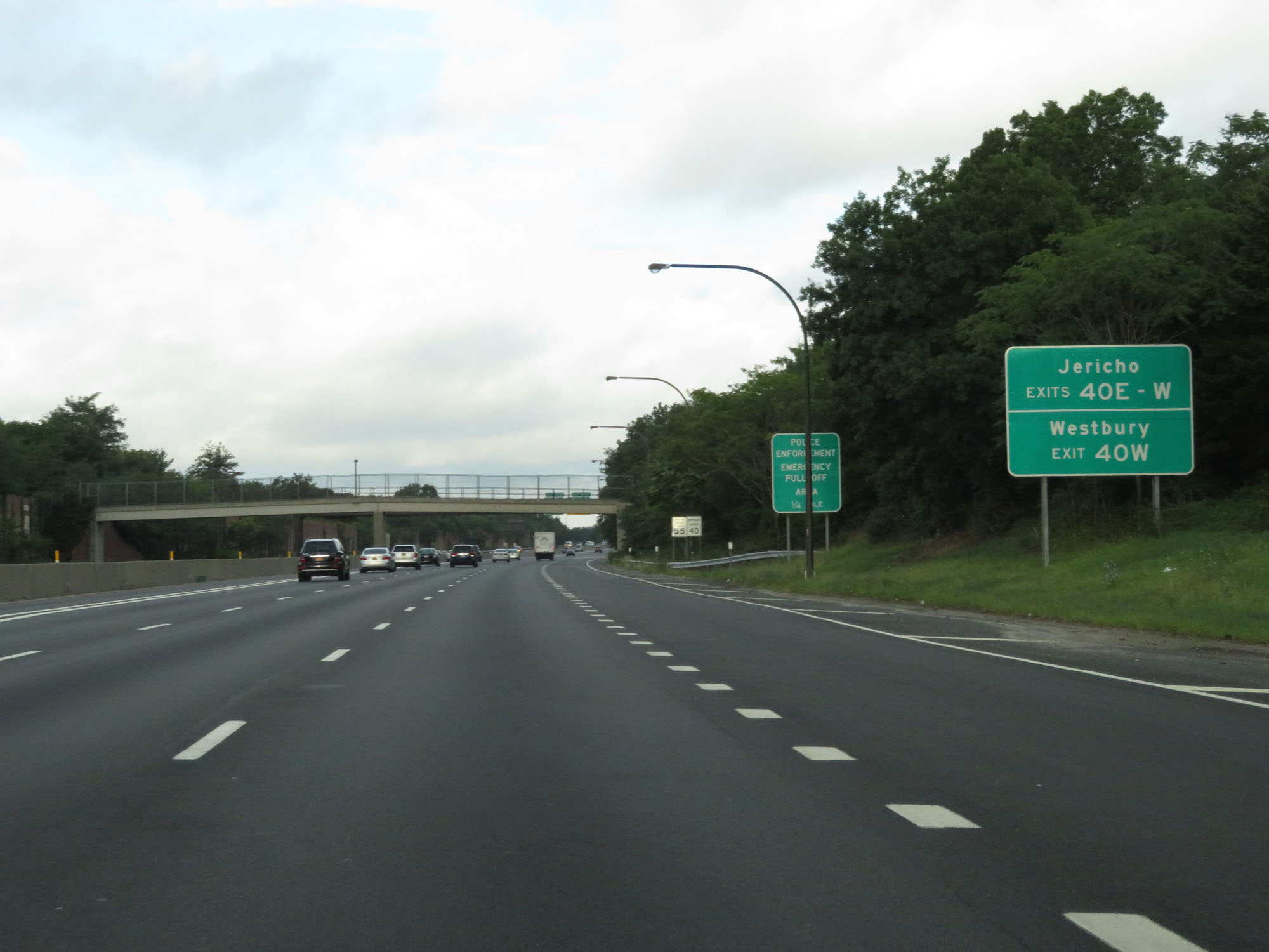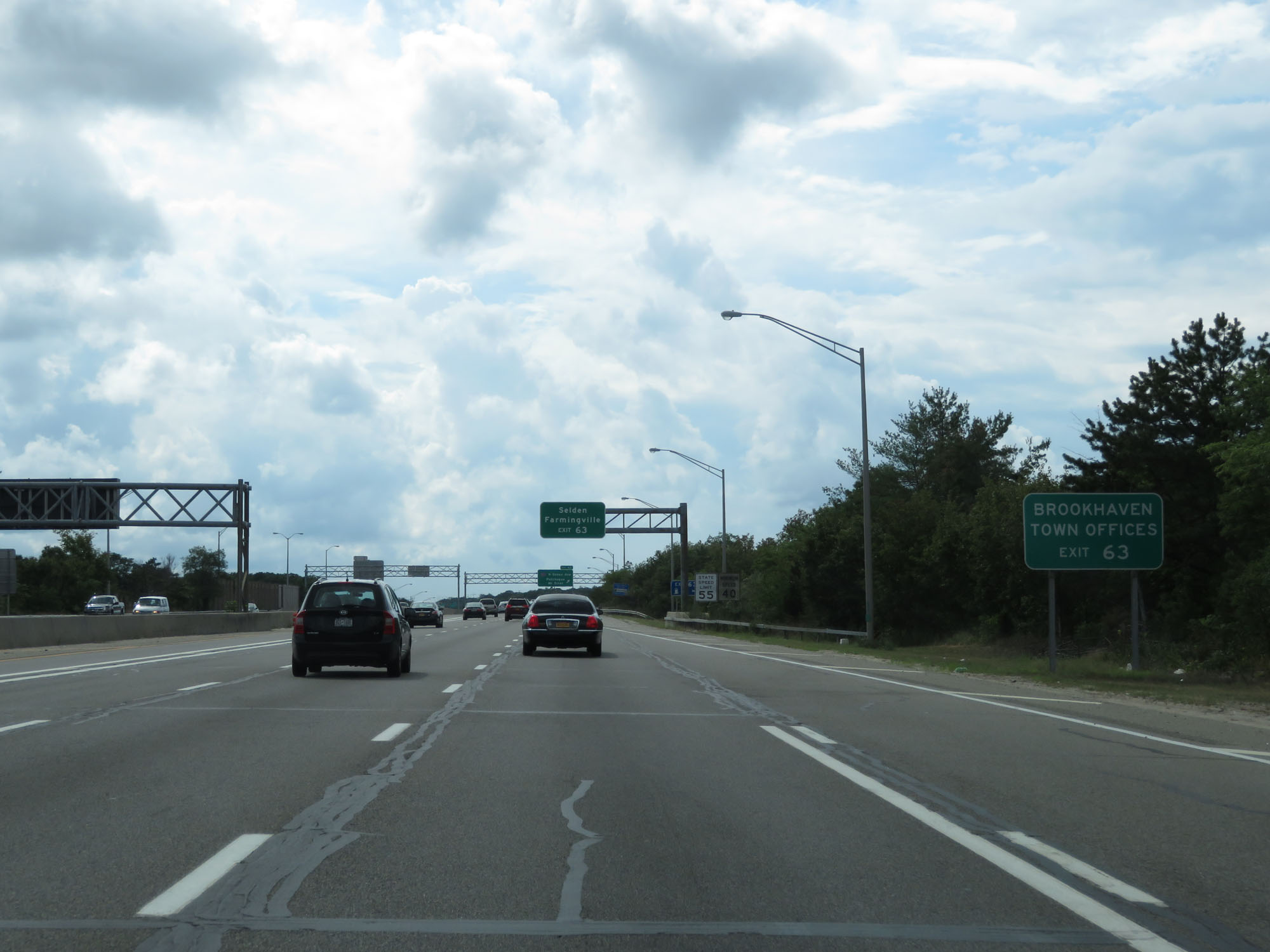 The speed limits remain 55 mph maximum and 40 mph minimum. In case you haven't guessed it already, traffic on the LIE moves much faster than 55 mph. (Photo taken 8/20/16). |
