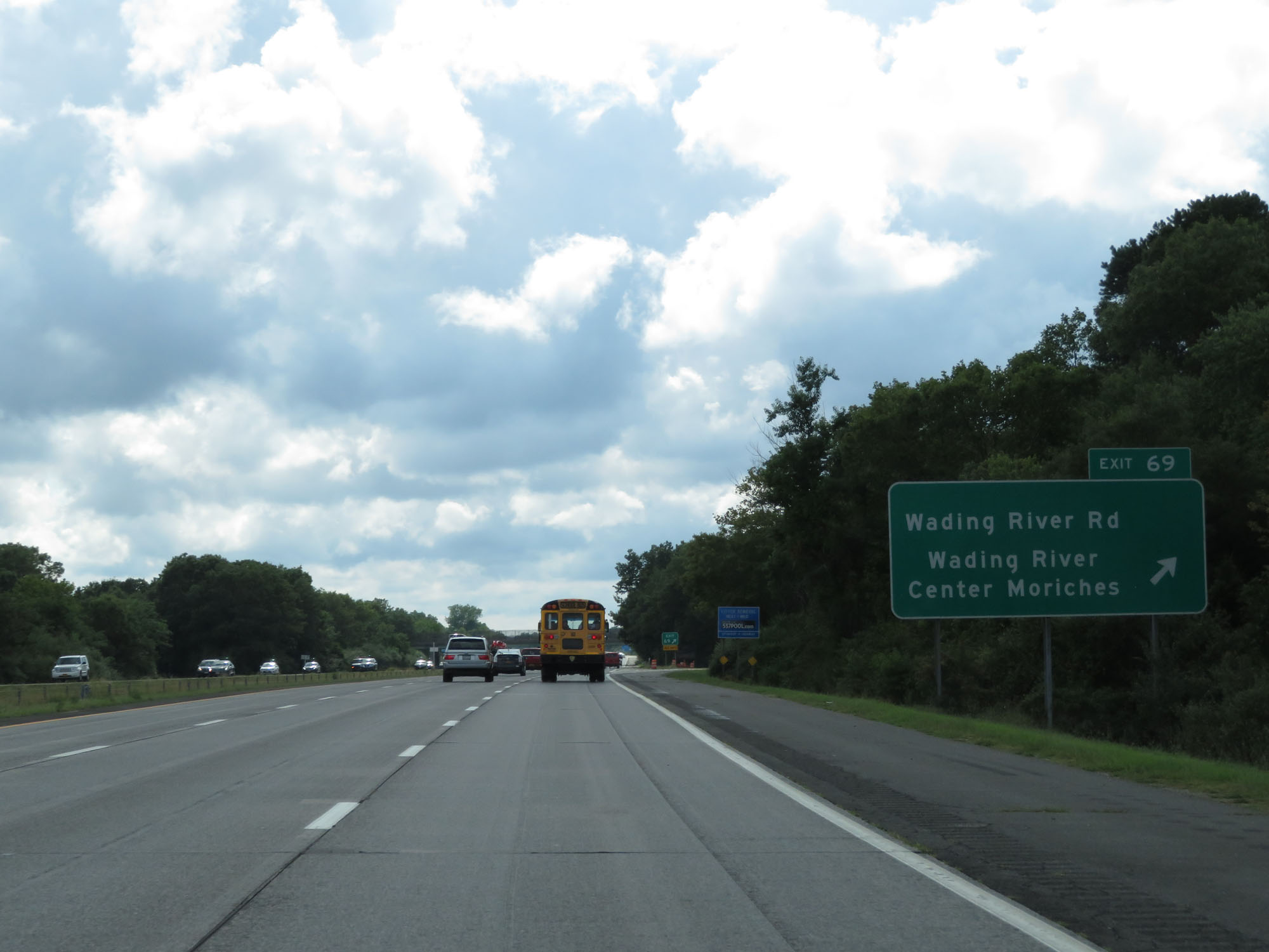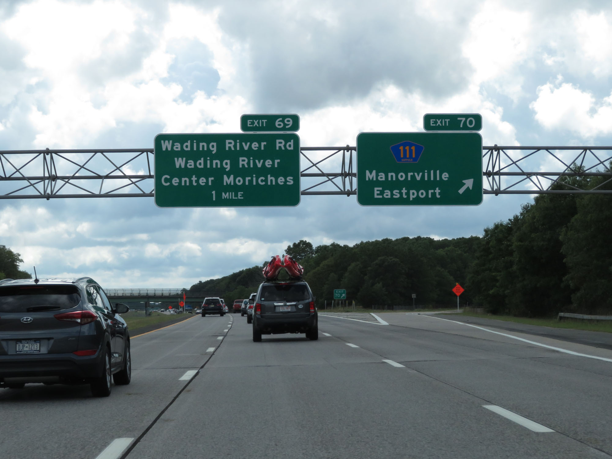 Interstate 495 West (Long Island Expressway) at Exit 69: Wading River Rd / Wading River / Center Moriches (Photo taken 8/20/16). |