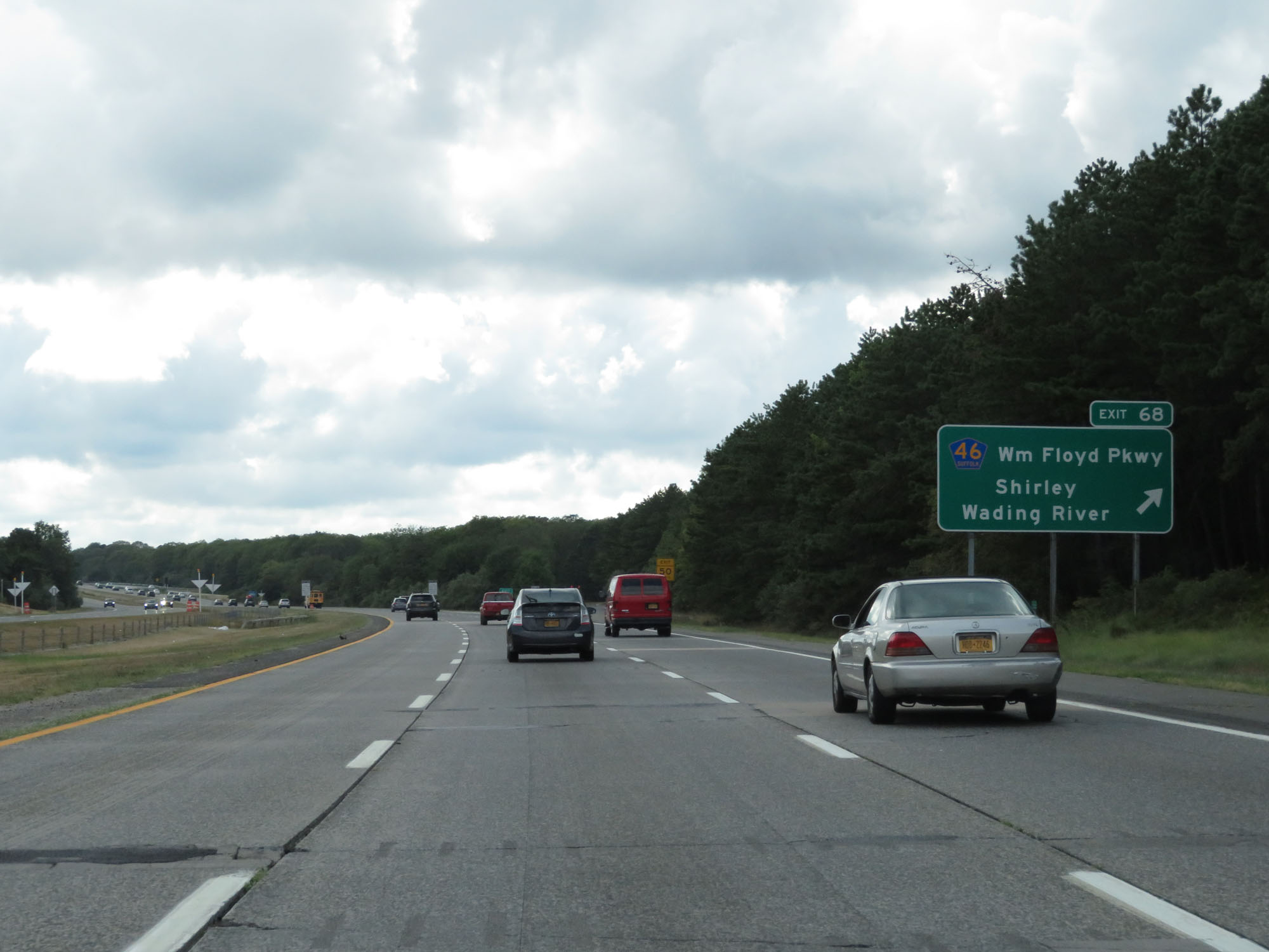 Interstate 495 West (Long Island Expressway) at Exit 68: CR 46 - William Floyd Pkwy / Shirley / Wading River (Photo taken 8/20/16). |