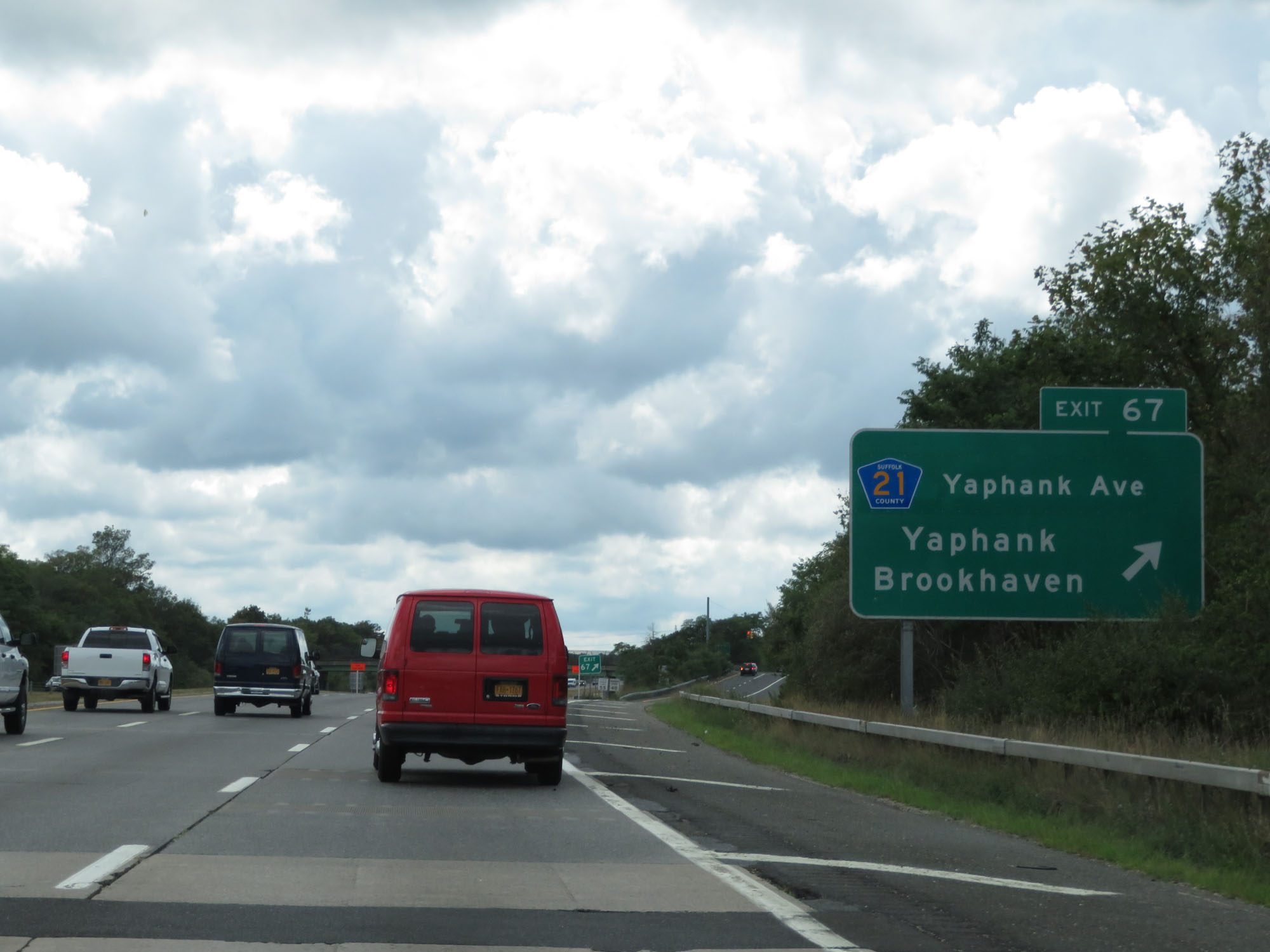 Interstate 495 West (Long Island Expressway) at Exit 67: CR 21 - Yaphank Ave / Yaphank / Brookhaven (Photo taken 8/20/16). |