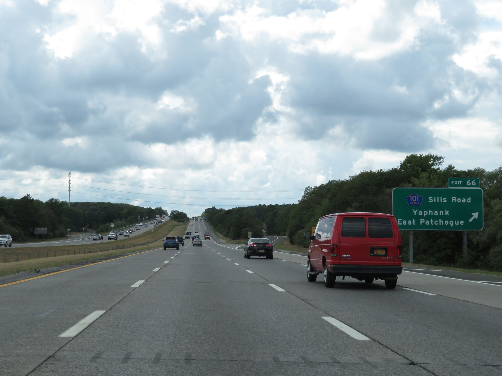 Interstate 495 West (Long Island Expressway) at Exit 66: CR 101 - Sills Road / Yaphank / East Patchogue (Photo taken 8/20/16). |