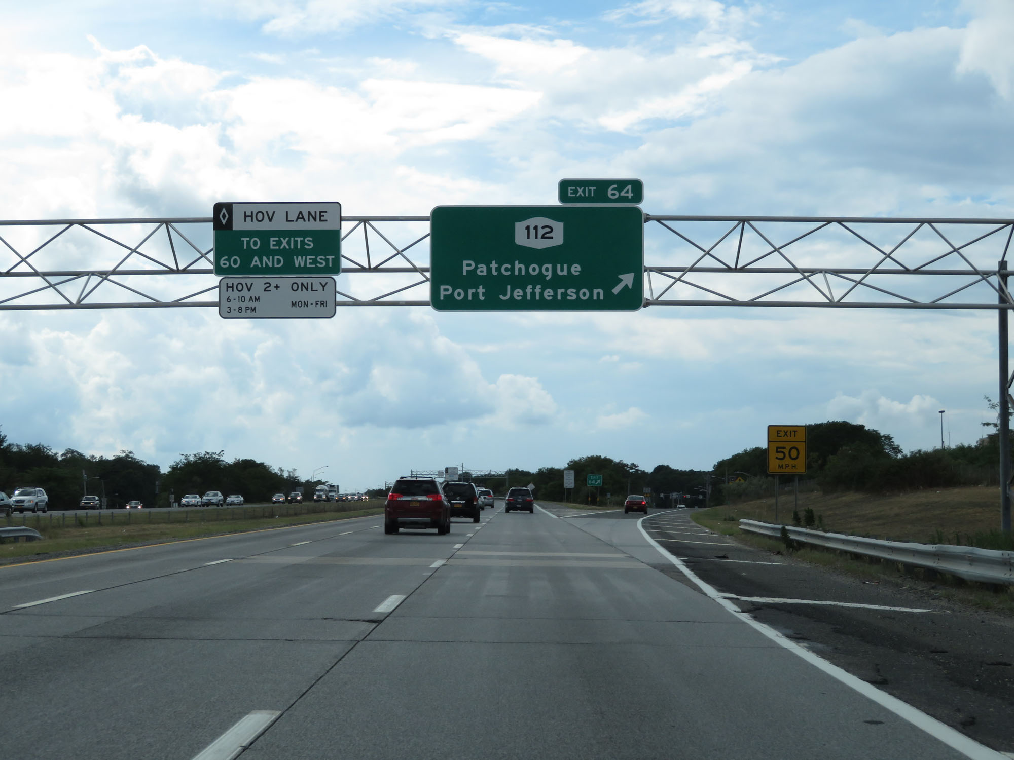 Interstate 495 West (Long Island Expressway) at Exit 64: NY 112 - Patchogue / Port Jefferson (Photo taken 8/20/16). |