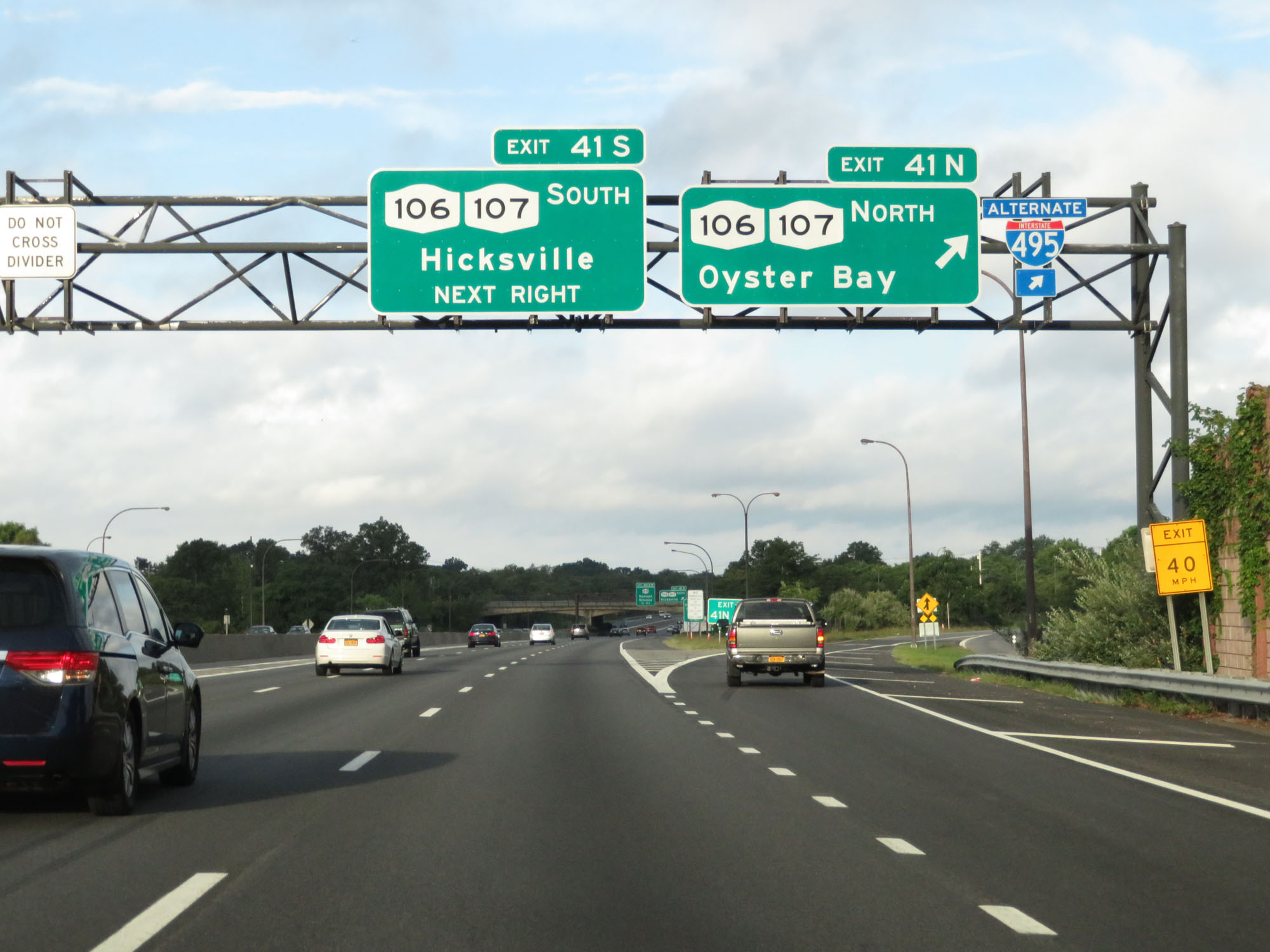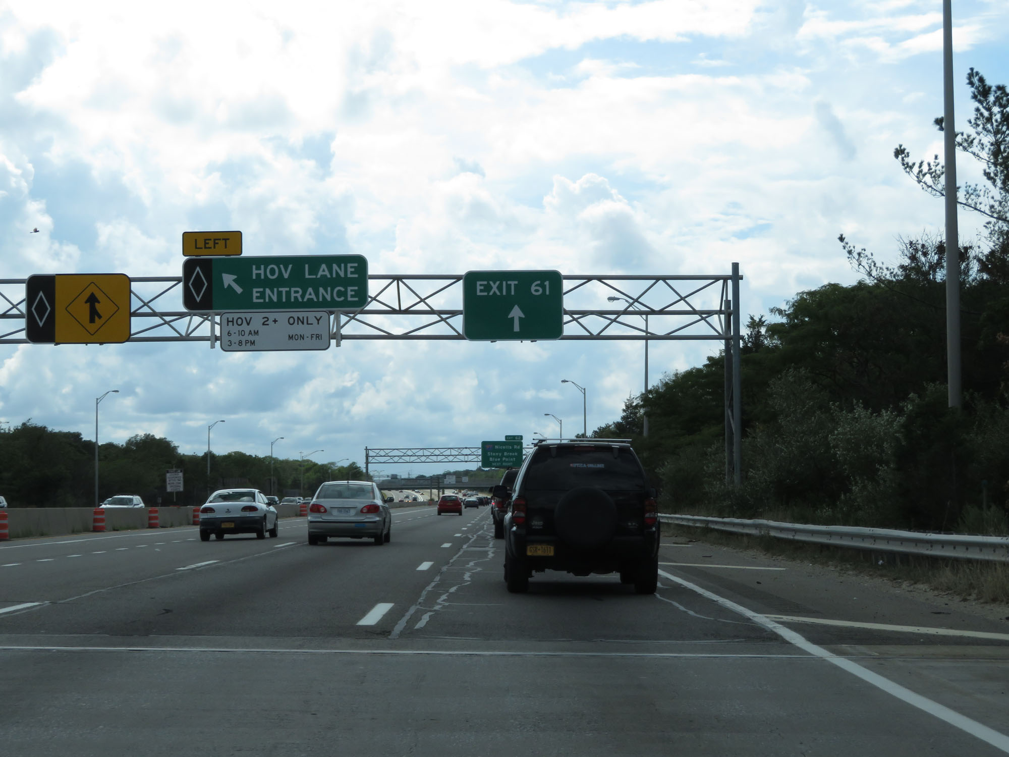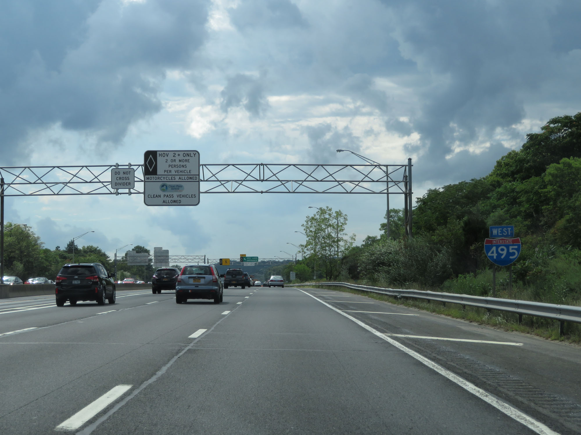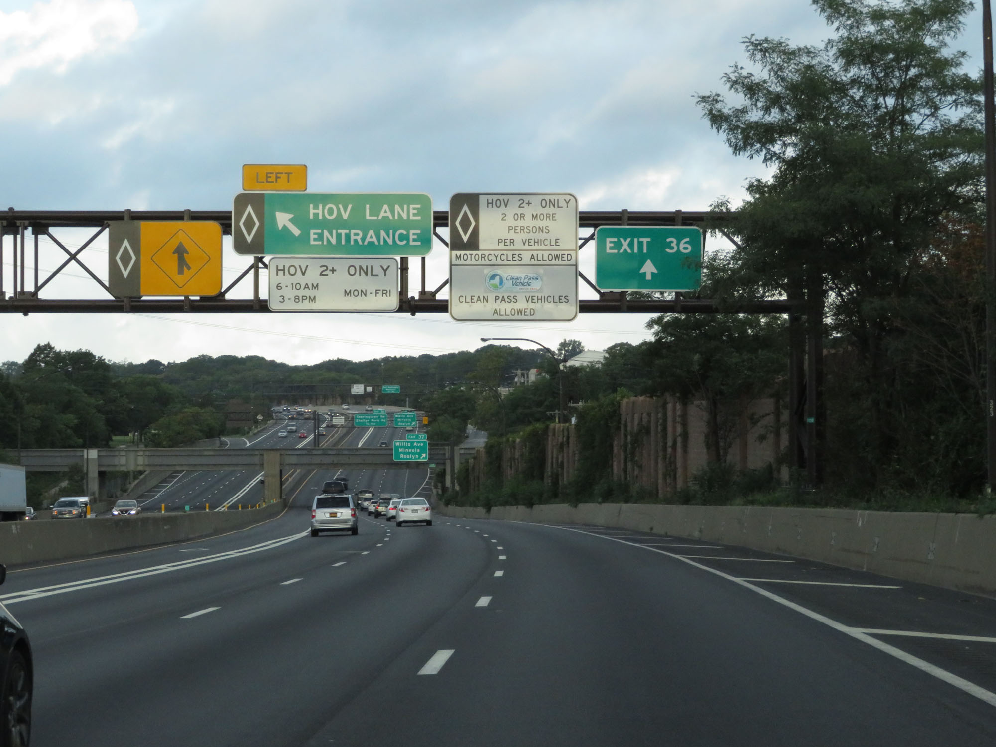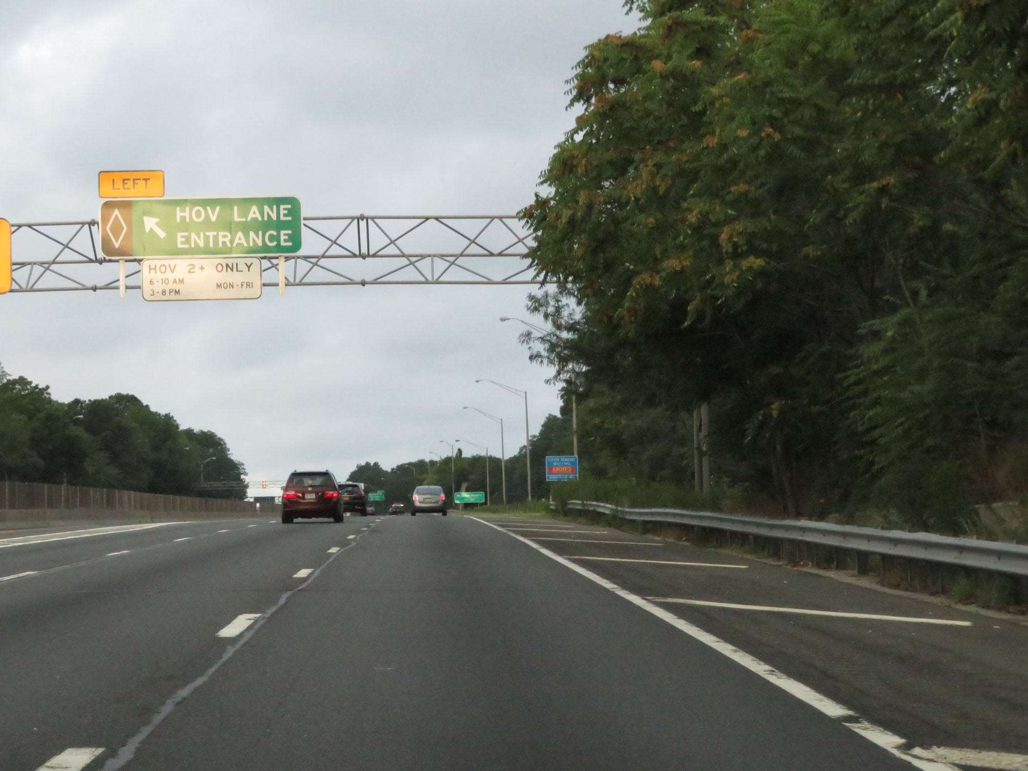 HOV Lane exit on Interstate 495 West (Long Island Expressway). (Photo taken 8/20/16). |