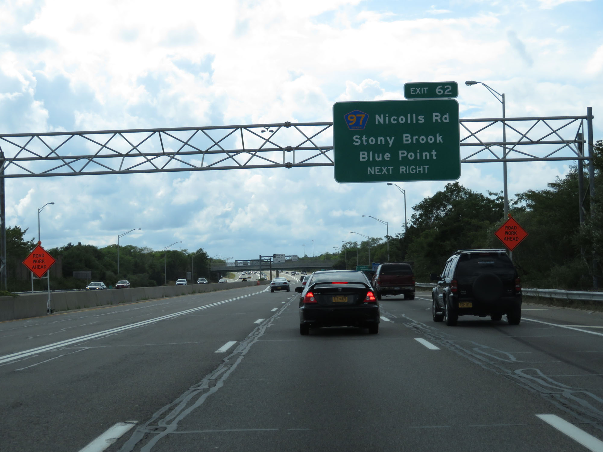 Interstate 495 West (Long Island Expressway) at Exit 62: CR 97 - Nicolls Rd / Stony Brook / Blue Point (Photo taken 8/20/16). |