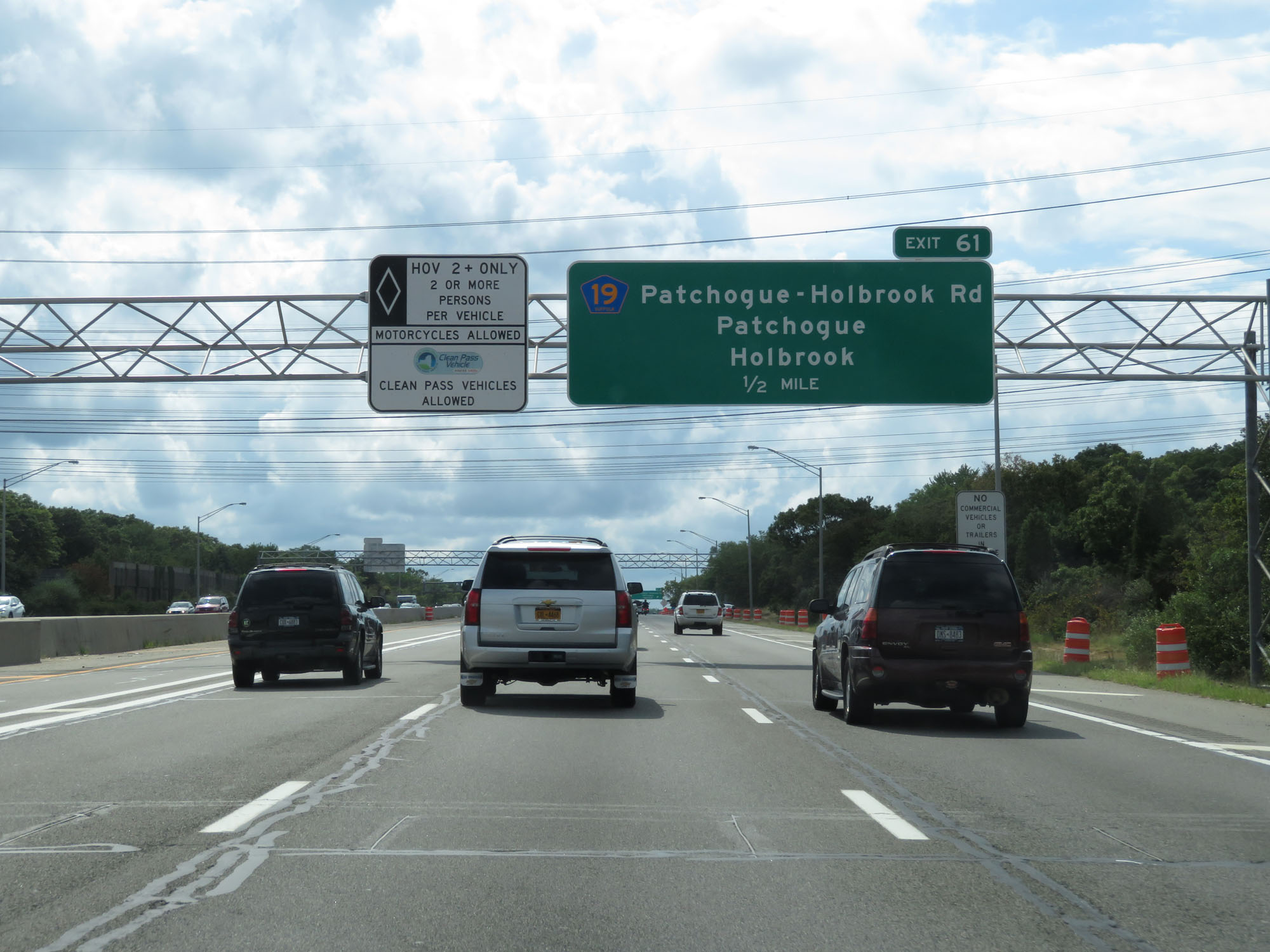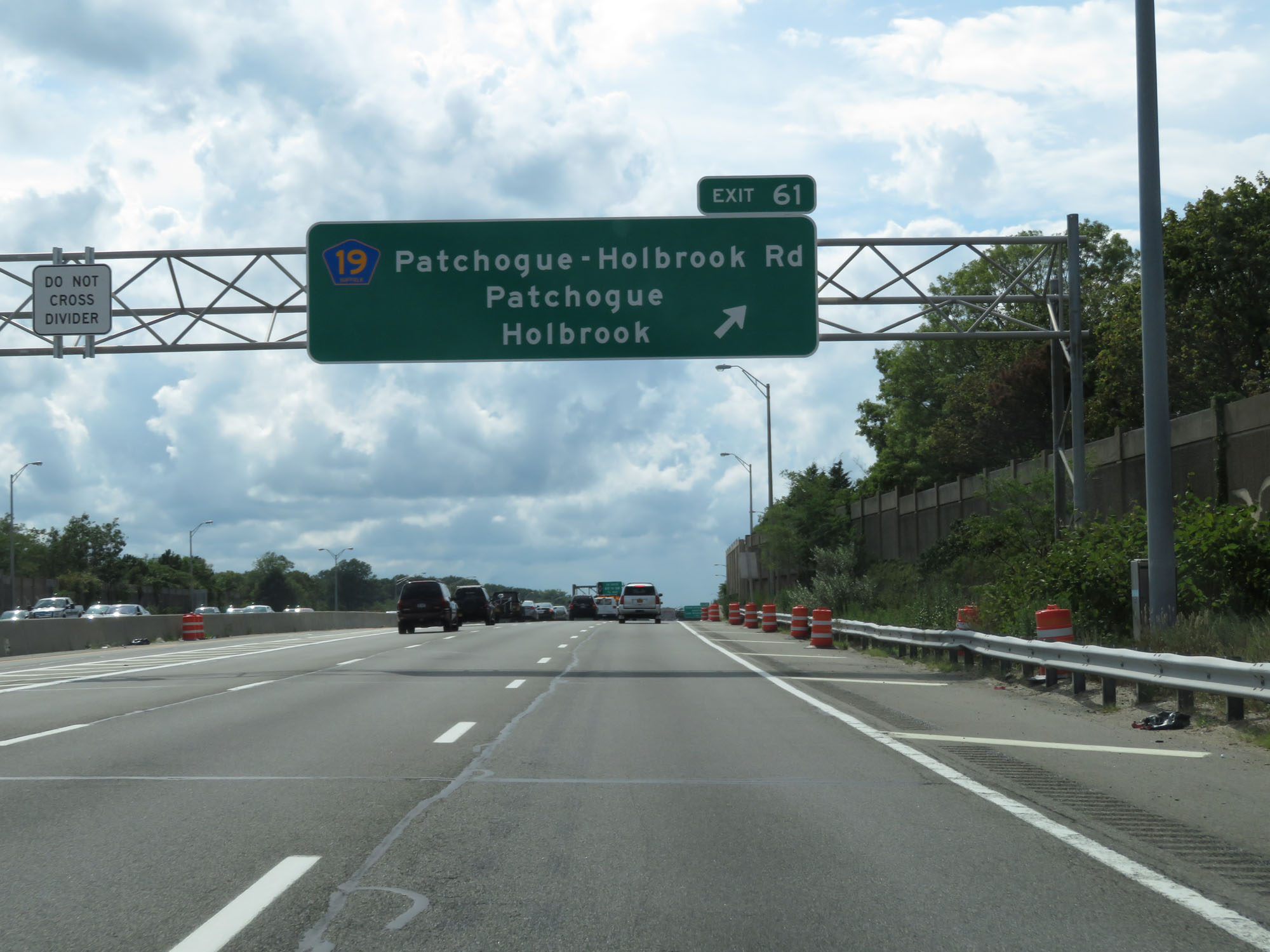 Interstate 495 West (Long Island Expressway) at Exit 61: CR 19 - Patchogue-Holbrook Rd / Patchogue / Holbrook (Photo taken 8/20/16). |