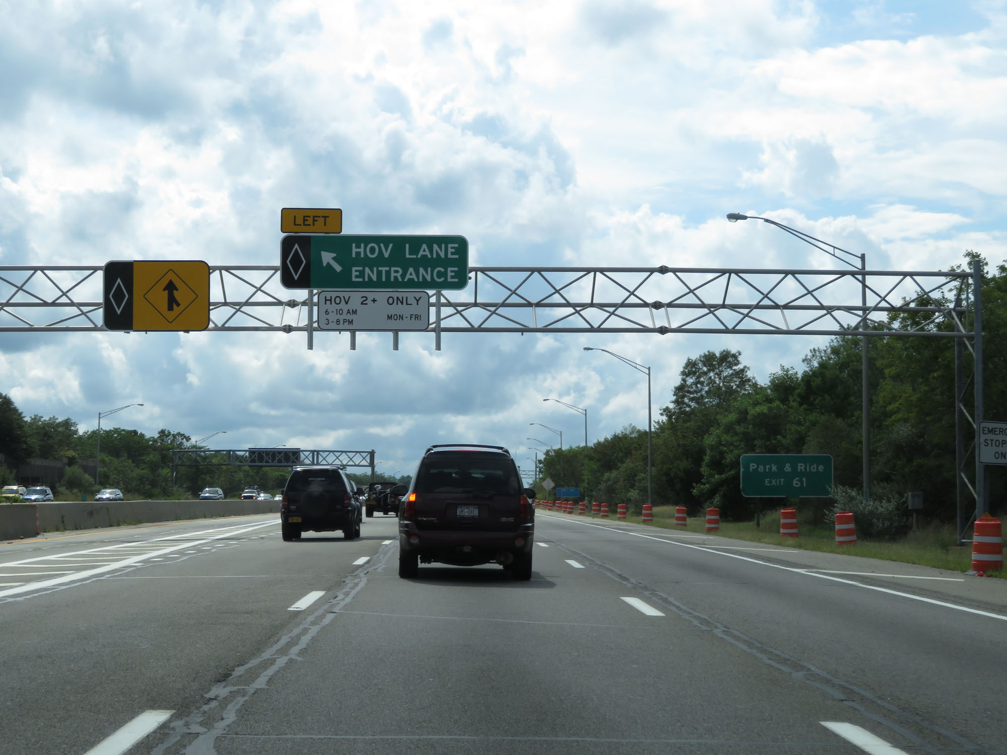 HOV Lane entrance just west of Exit 58. (Photo taken 8/20/16). |