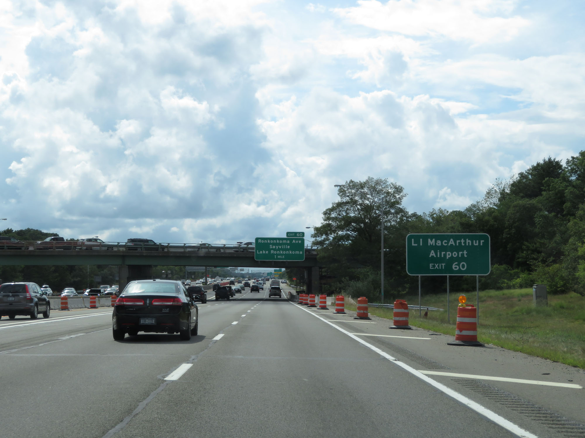 Interstate 495 West (Long Island Expressway) at Exit 60: Ronkonkoma Ave / Sayville / Lake Ronkonkoma (Photo taken 8/20/16). |