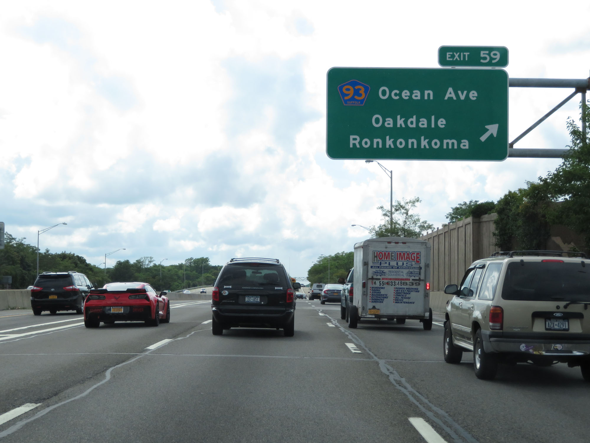 Interstate 495 West (Long Island Expressway) at Exit 59: CR 93 - Ocean Ave / Oakdale / Ronkonkoma (Photo taken 8/20/16). |
