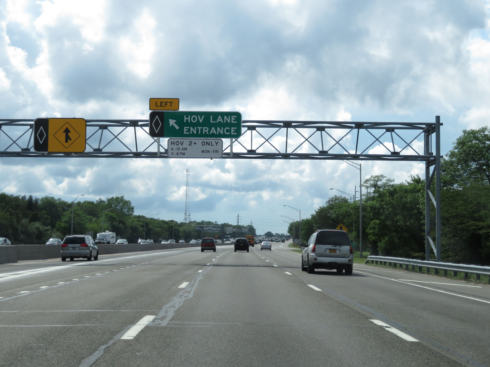 HOV Lane entrance on Interstate 495 West (Long Island Expressway). (Photo taken 8/20/16). |