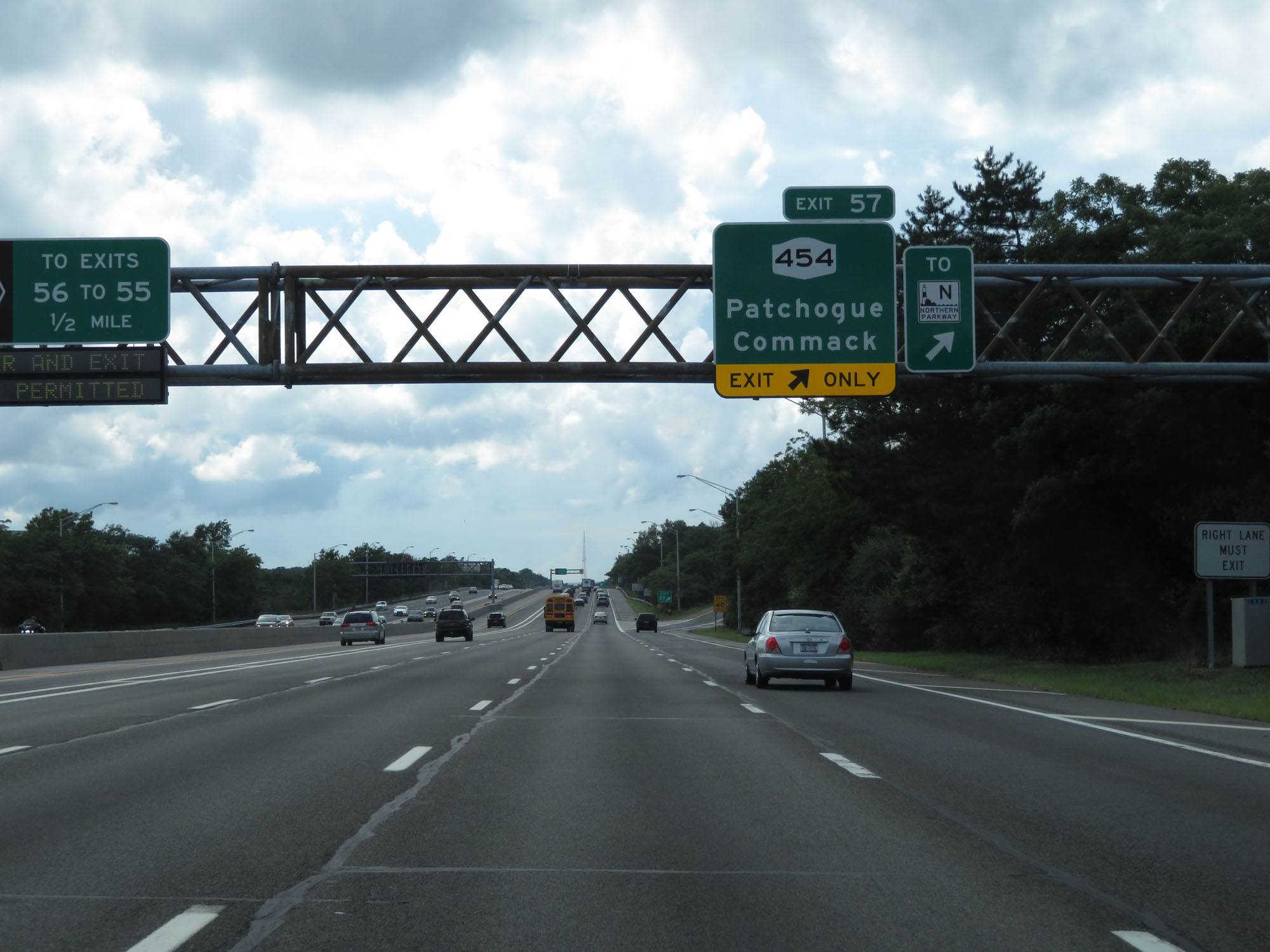 Interstate 495 West (Long Island Expressway) at Exit 57: NY 454 - Patchogue / Commack (Photo taken 8/20/16). |
