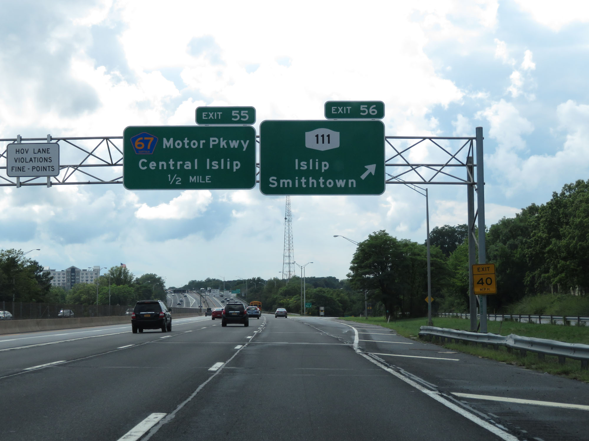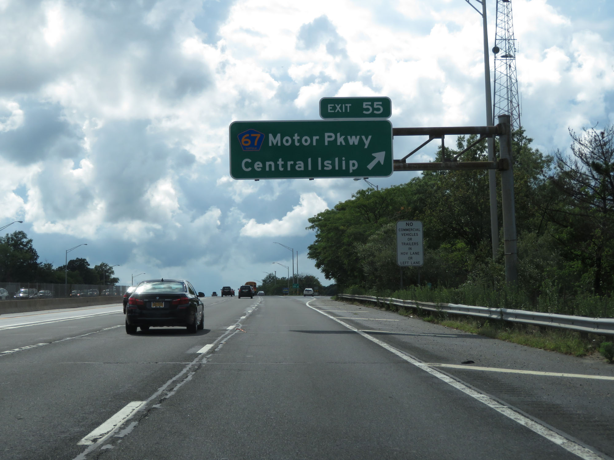 Interstate 495 West (Long Island Expressway) at Exit 55: CR 67 - Motor Pkwy / Central Islip (Photo taken 8/20/16). |