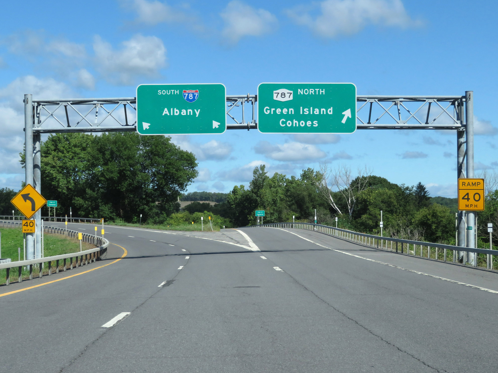 Interstate 787 South at Exit: NY 787 North - Green Island / Cohoes (Photo taken 8/22/16). |