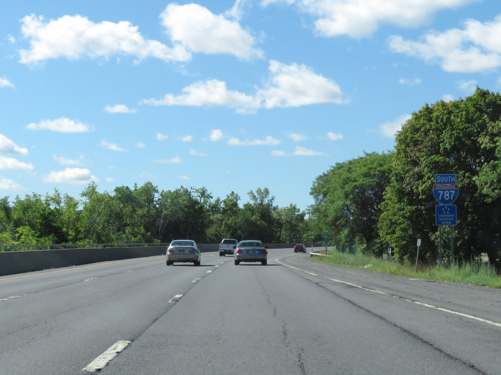View on Interstate 787 South as it curves to the south after its junctions with NY 7 and NY 787. (Photo taken 8/22/16). |