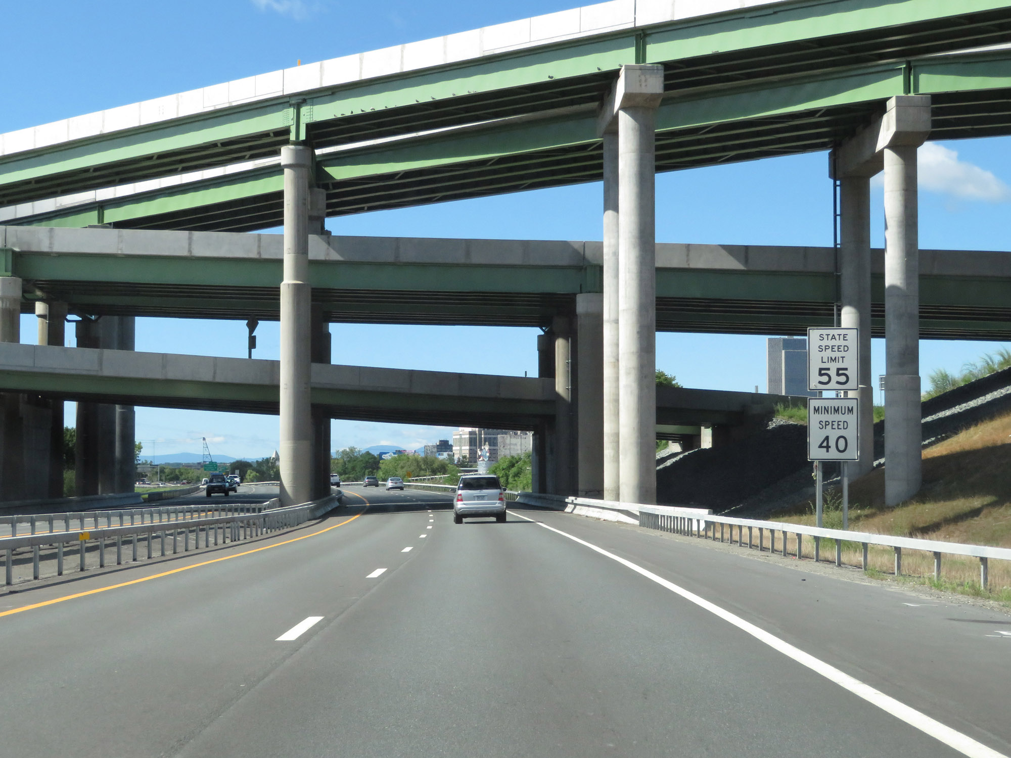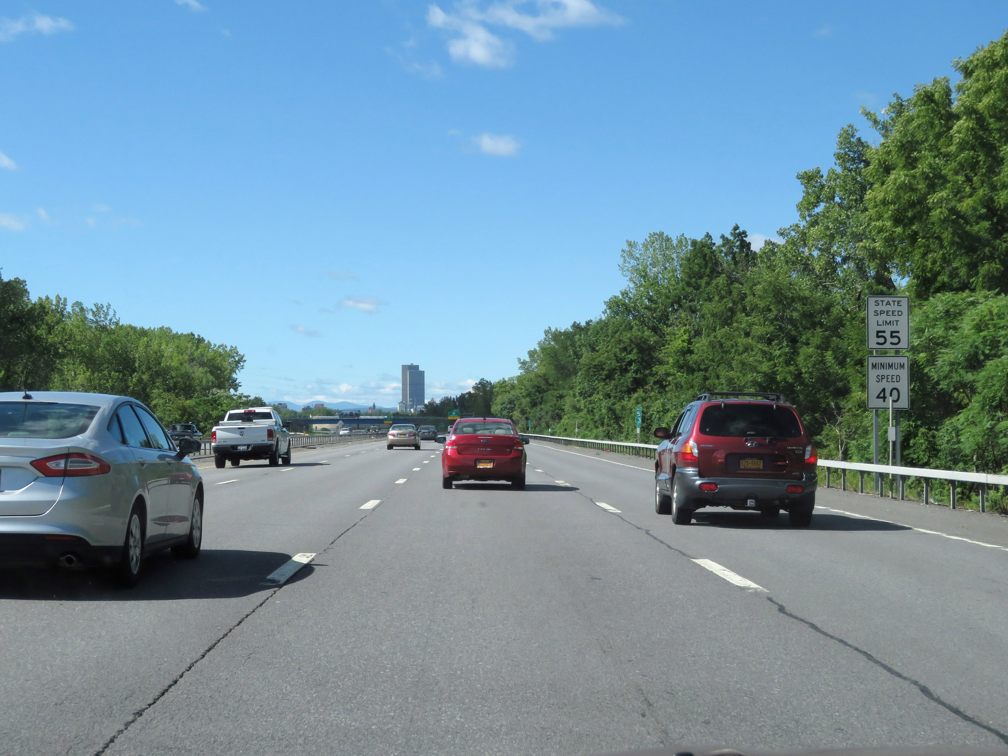 The speed limits on Interstate 787 South are 55 mph maximum and 40 mph minimum. (Photo taken 8/22/16). |