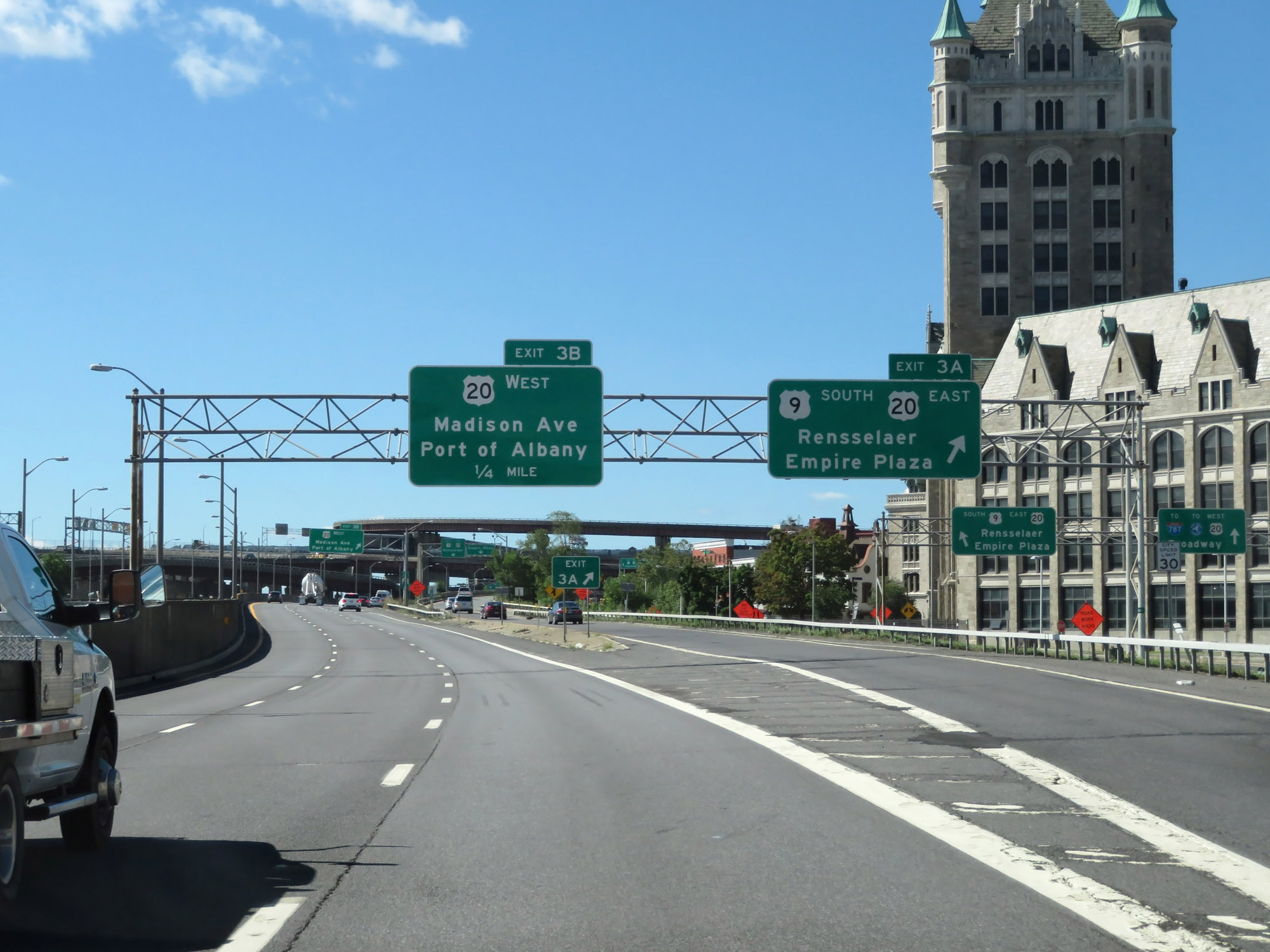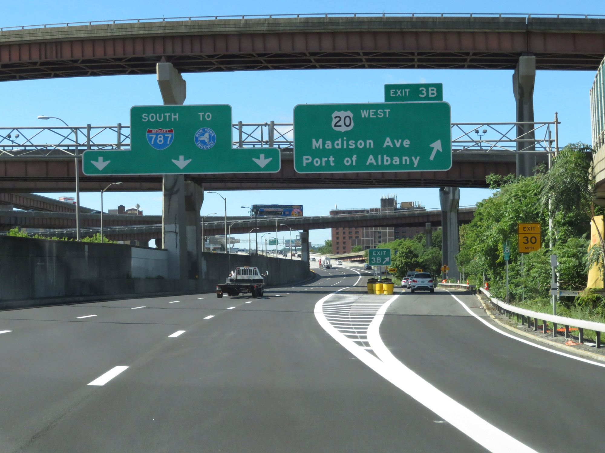 Interstate 787 South at Exit 3B: US 20 West - Madison Ave / Port of Albany (Photo taken 8/22/16). |