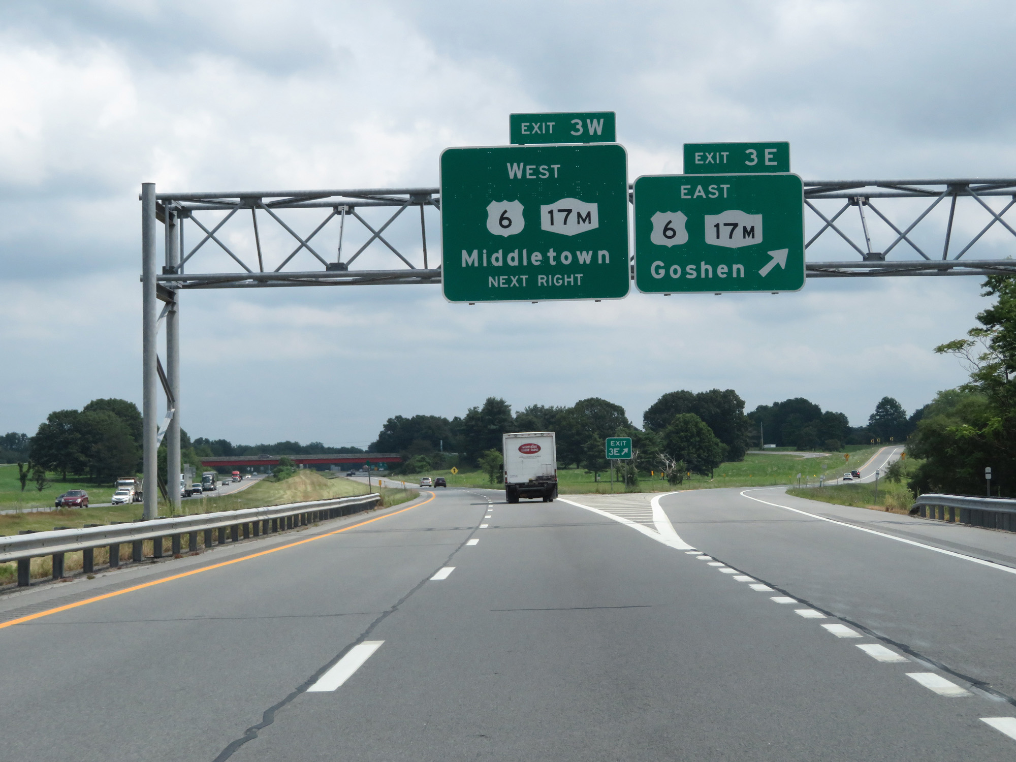 Interstate 84 East at Exit 3E: US 6 East / NY 17M East - Goshen (Photo taken 8/4/17). |