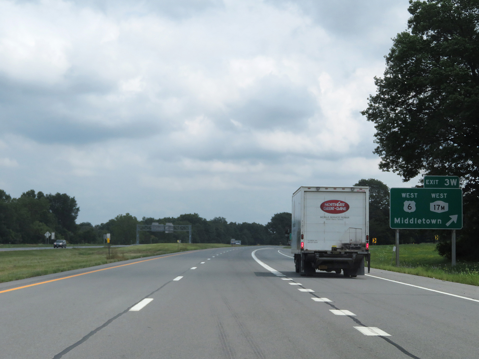 Interstate 84 East at Exit 3W: US 6 West / NY 17M West - Middletown (Photo taken 8/4/17). |