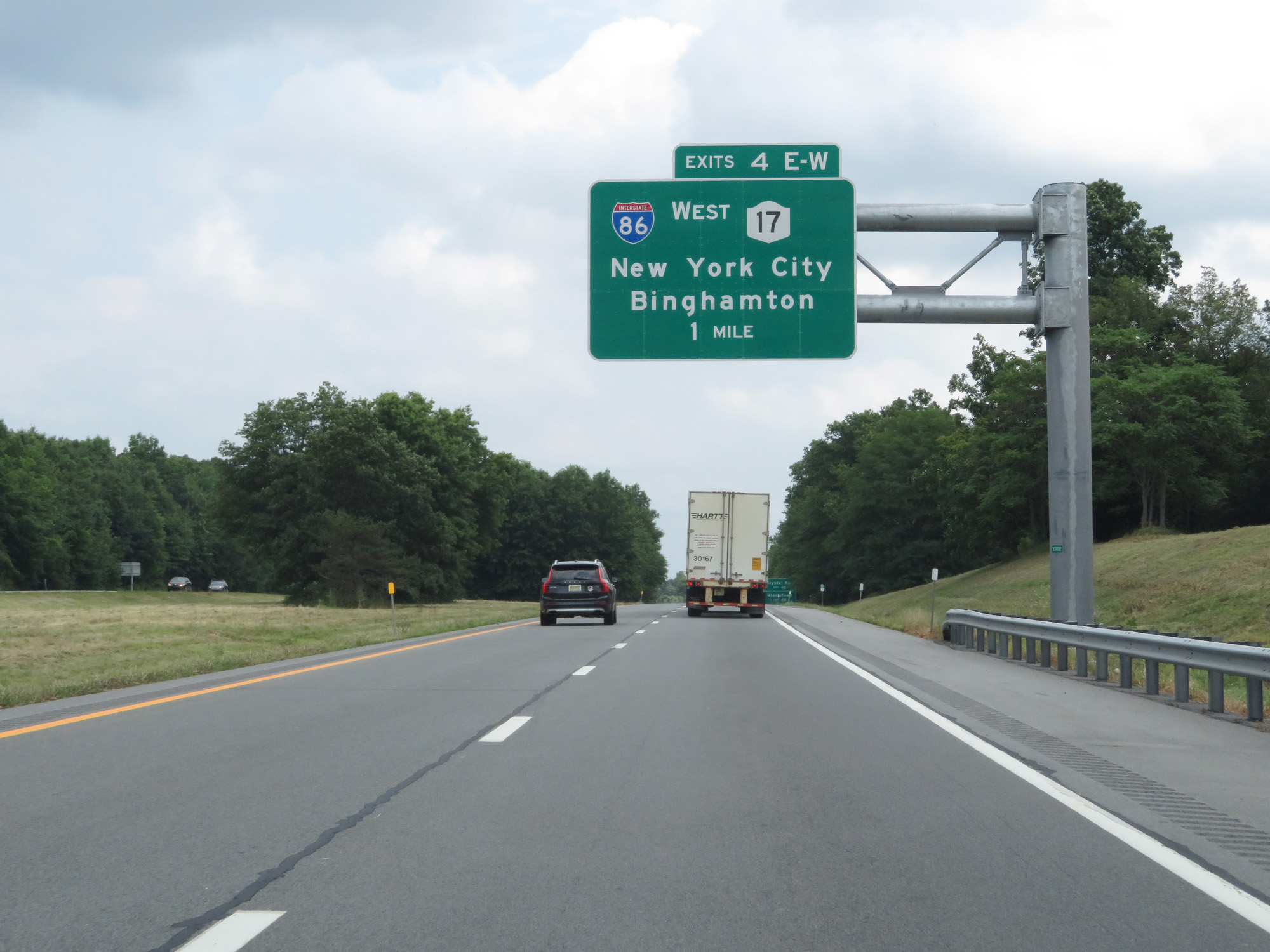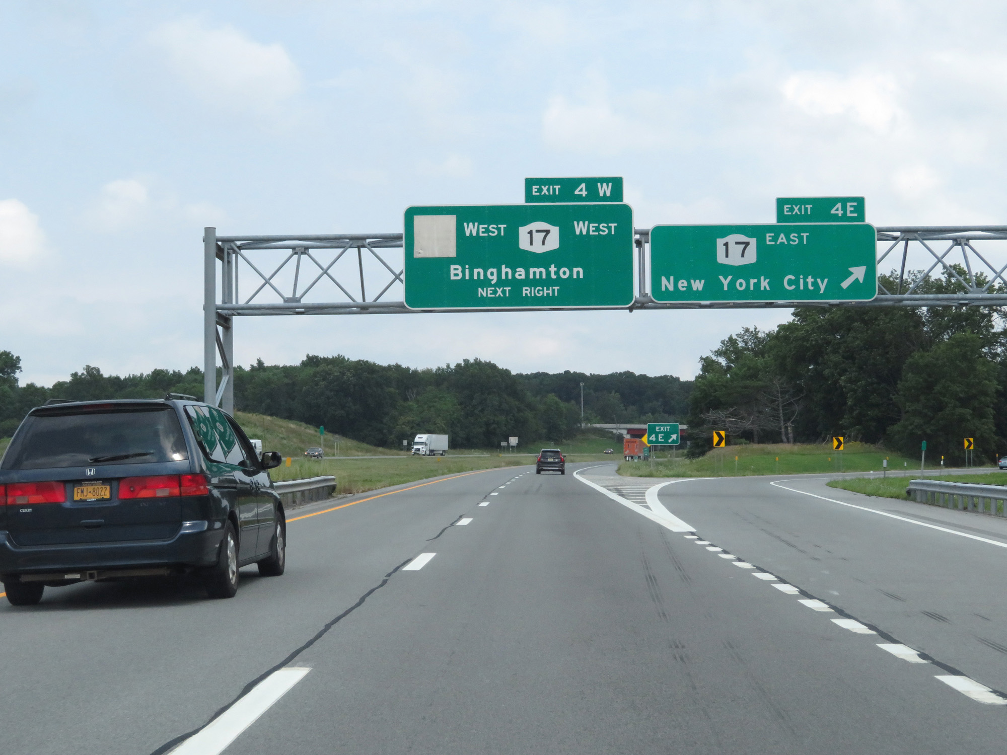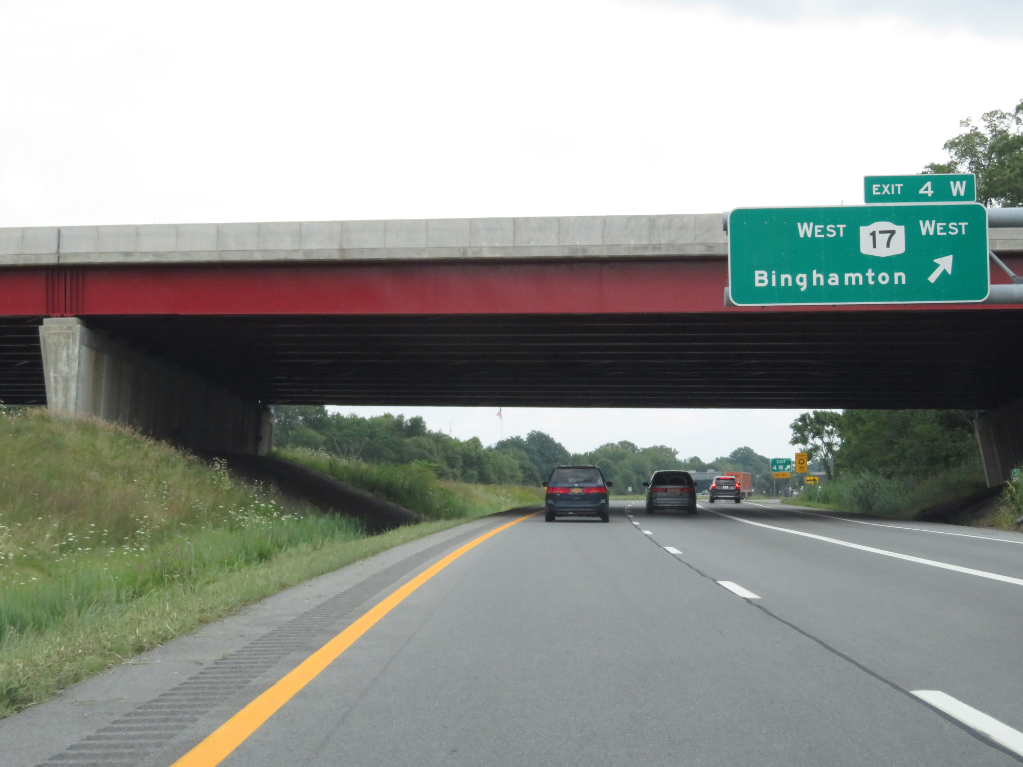 Interstate 84 East at Exit 4W: NY 17 West - Binghamton (Photo taken 8/4/17). |