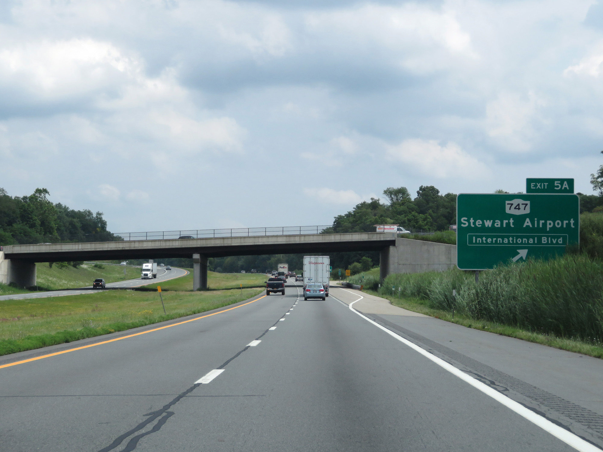 Interstate 84 East at Exit 5A: NY 747 - Stewart Airport / International Blvd (Photo taken 8/4/17). |