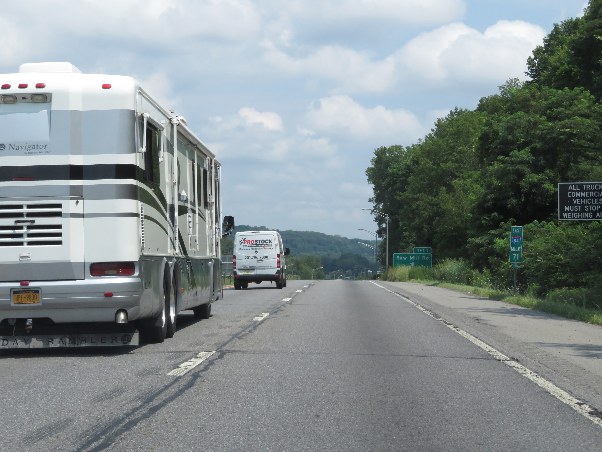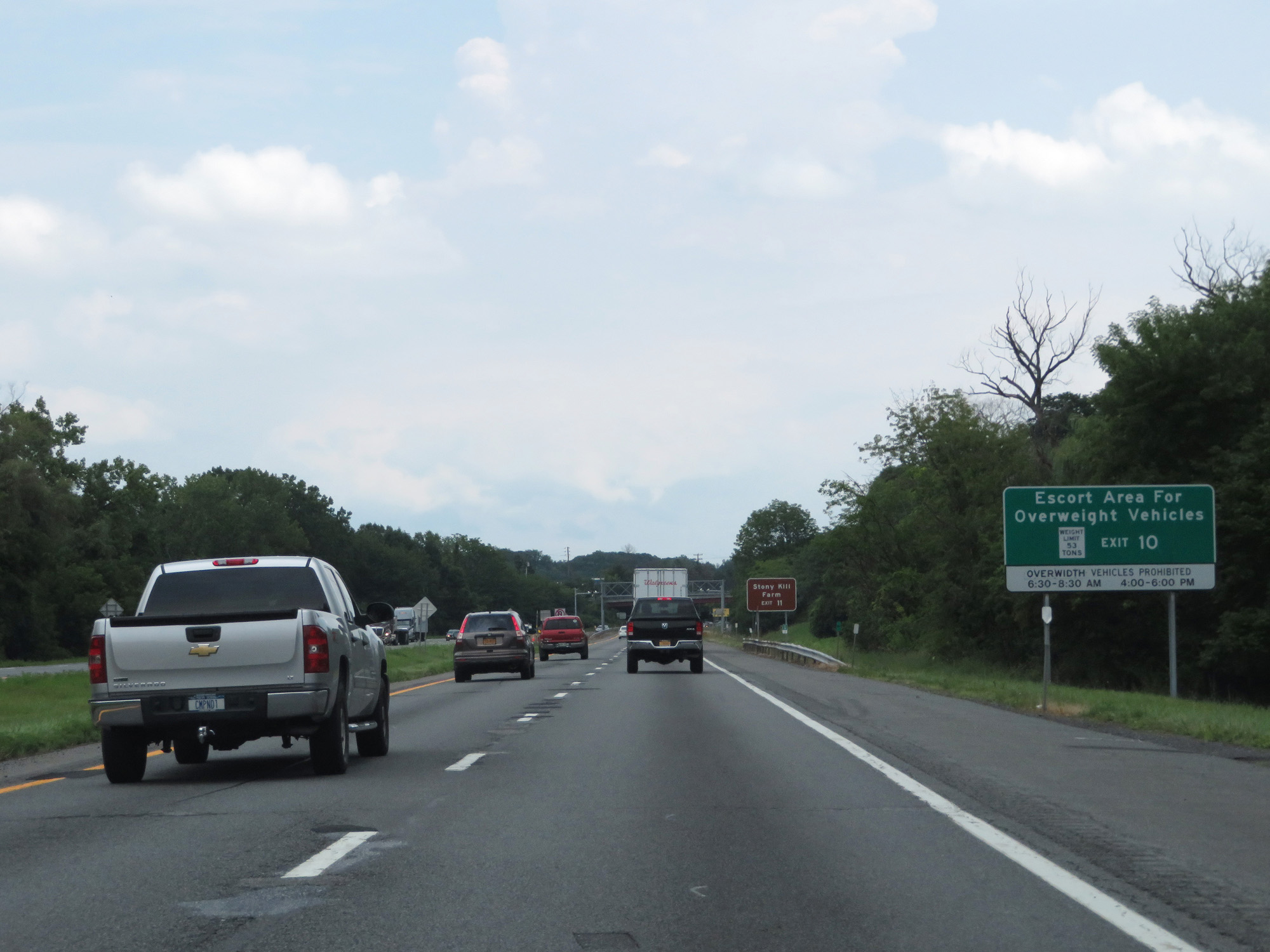 Also take Exit 10 to the Escort Area for Overweight Vehicles over 53 tons who will be crossing the Newburgh-Beacon Bridge ahead. (Photo taken 8/4/17). |