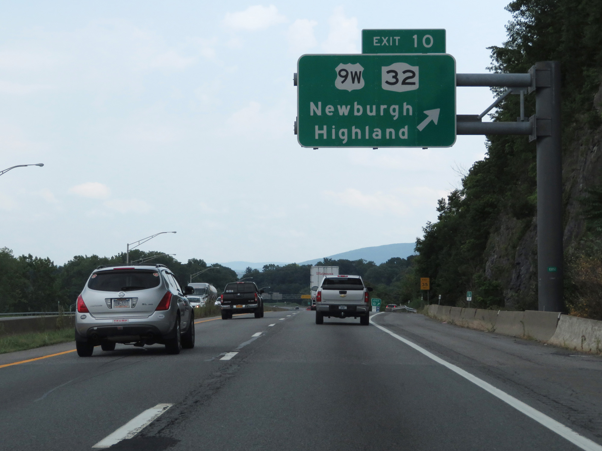 Interstate 84 East at Exit 10: US 9W / NY 32 - Newburgh / Highland (Photo taken 8/4/17). |