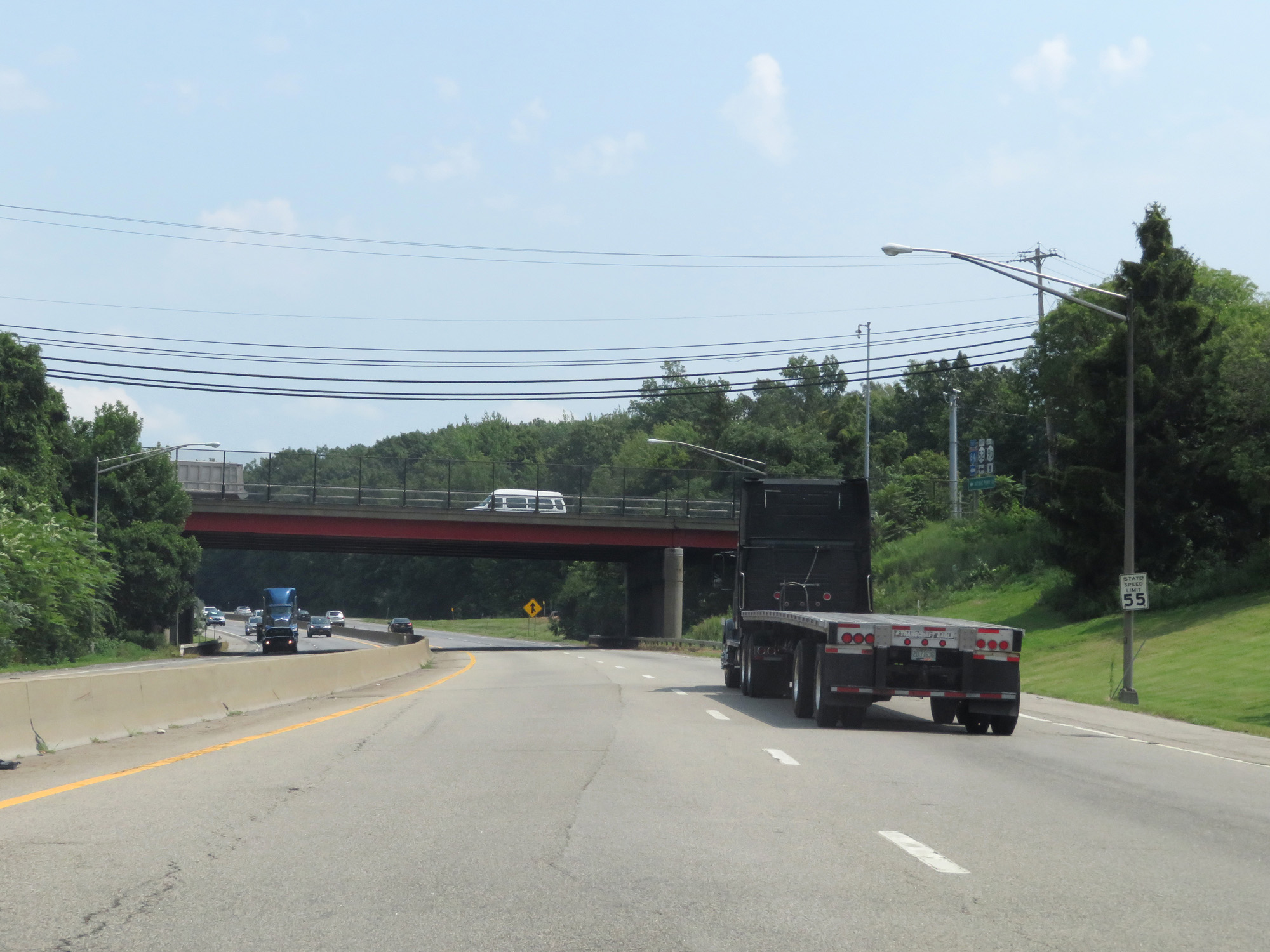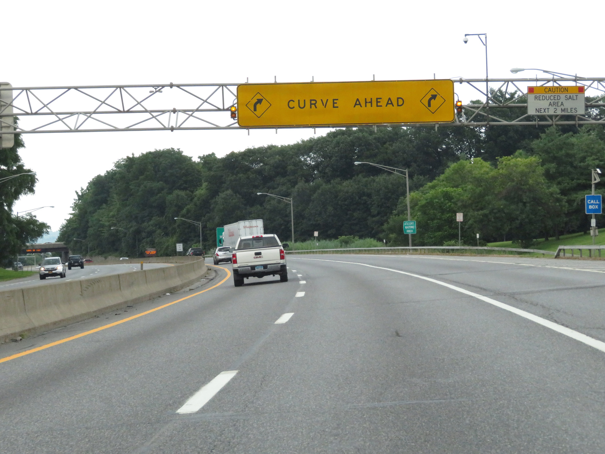 View on Interstate 84 East, as it traverses a sharp curve on its approach to the Newburgh-Beacon Bridge. (Photo taken 8/4/17). |