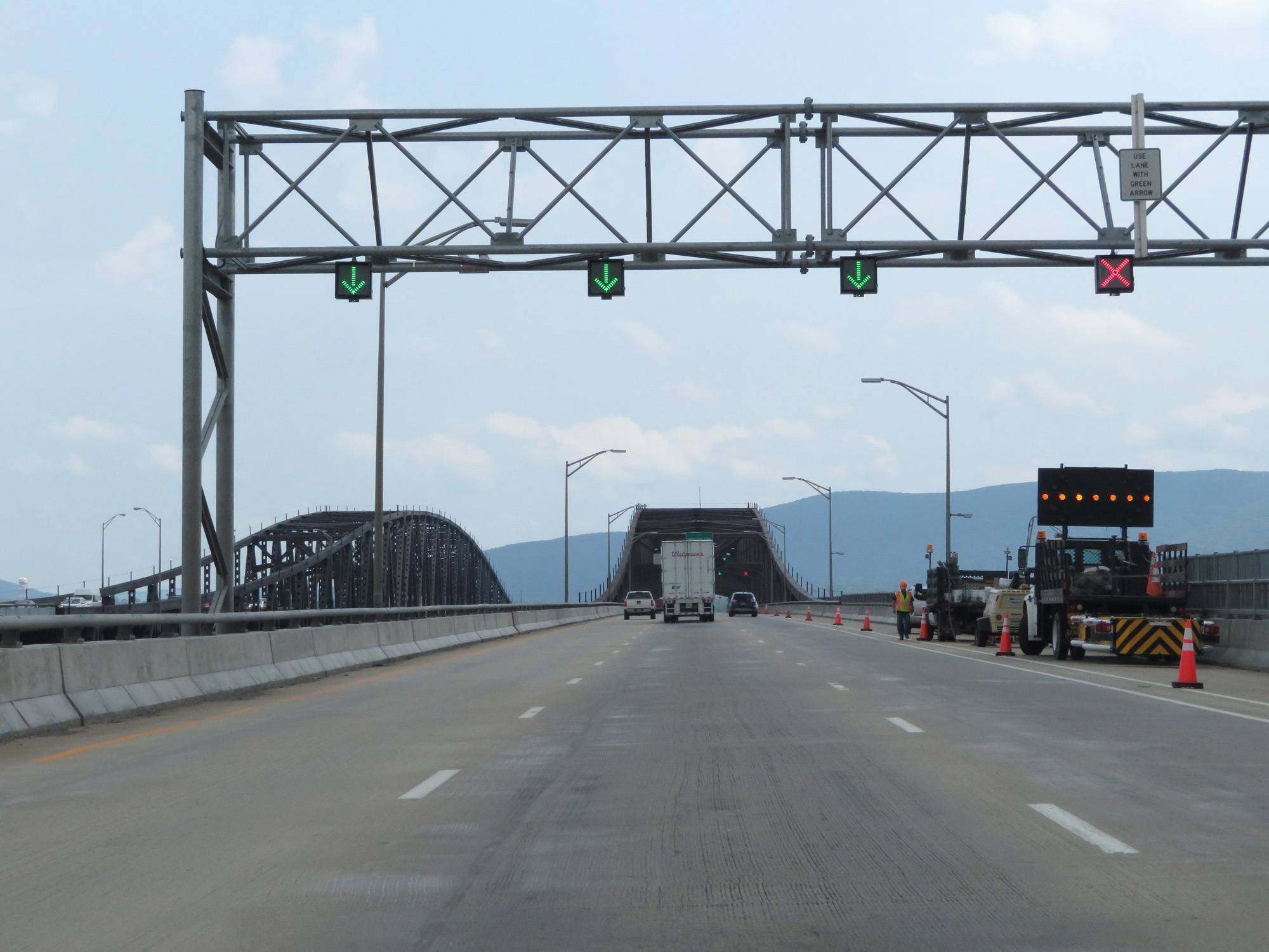 Electronic lane control signals are used on the Newburgh-Beacon Bridge. (Photo taken 8/4/17). |
