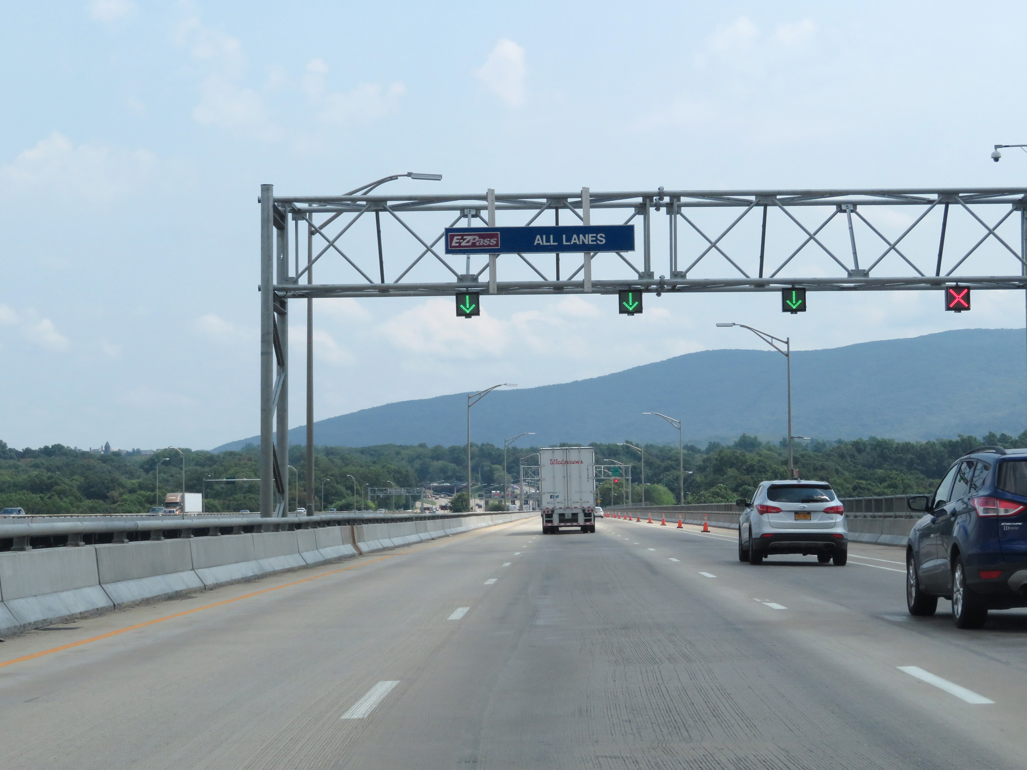 Interstate 84 East at the toll plaza for the Newburgh-Beacon Bridge. (Photo taken 8/4/17). |