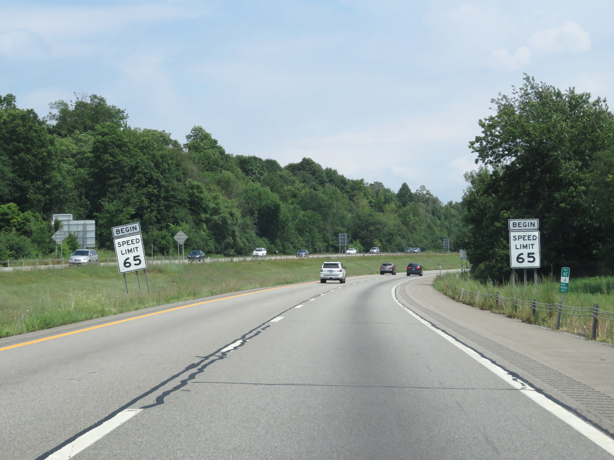 The speed limit remains 65 mph, which is the standard speed limit on most rural Interstate highways in New York state. (Photo taken 8/4/17). |