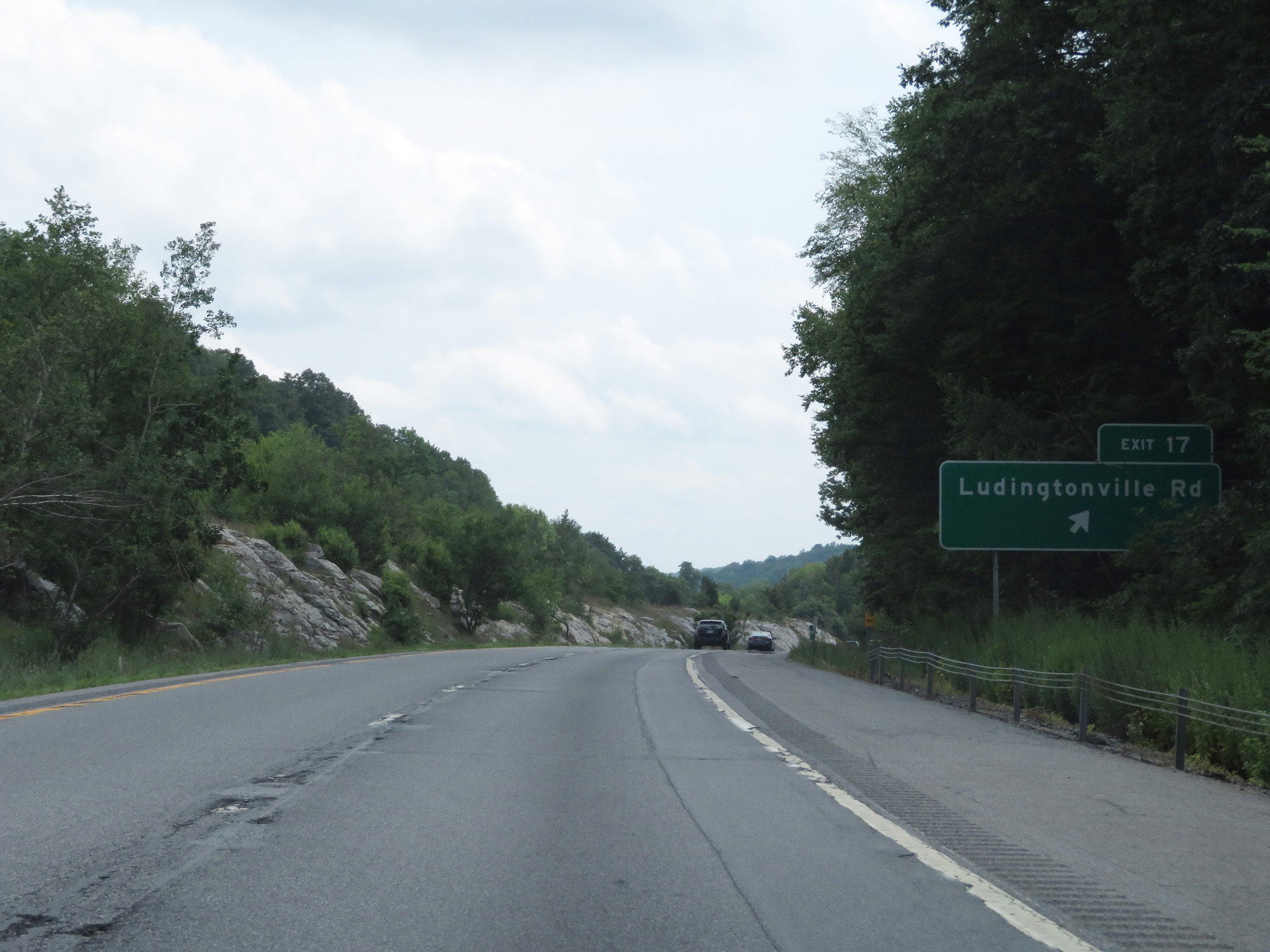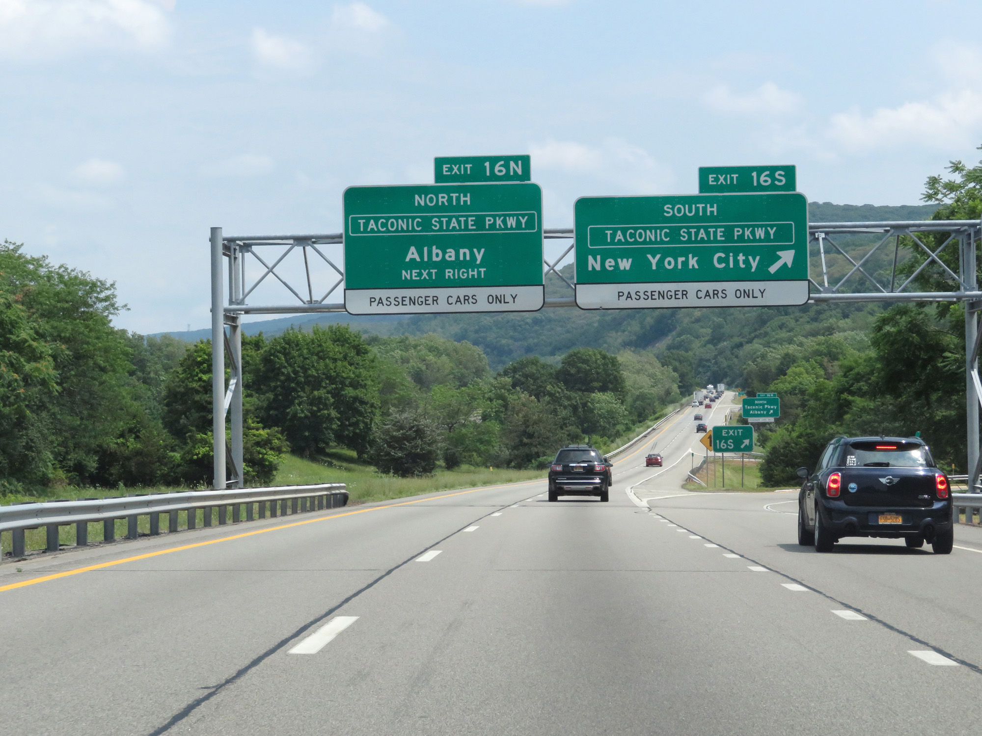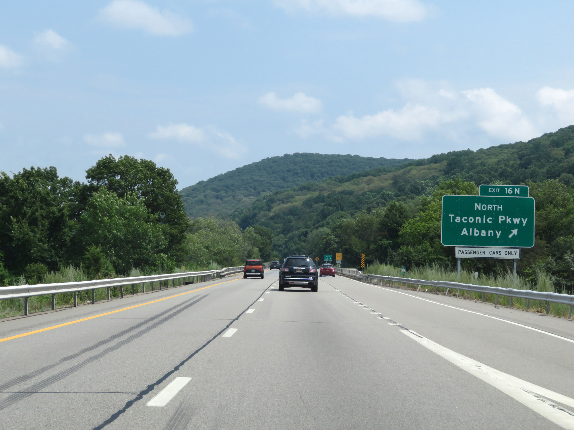 Interstate 84 East at Exit 7A: Interstate 87 (NYS Thruway) - Albany / New York City (Photo taken 8/4/17). |