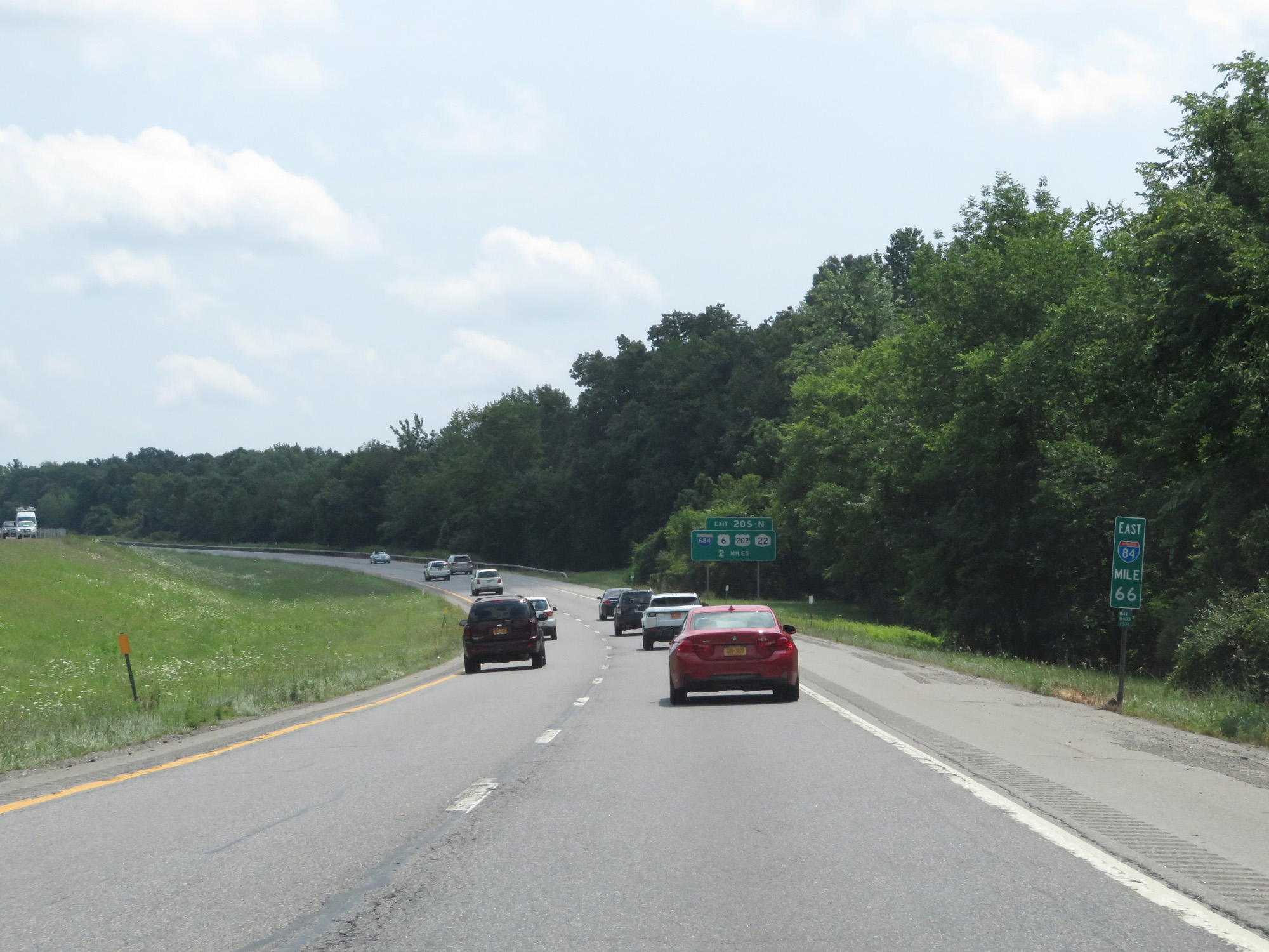 Interstate 84 East at Exit 5: NY 208 - Maybrook / Walden (Photo taken 8/4/17). |