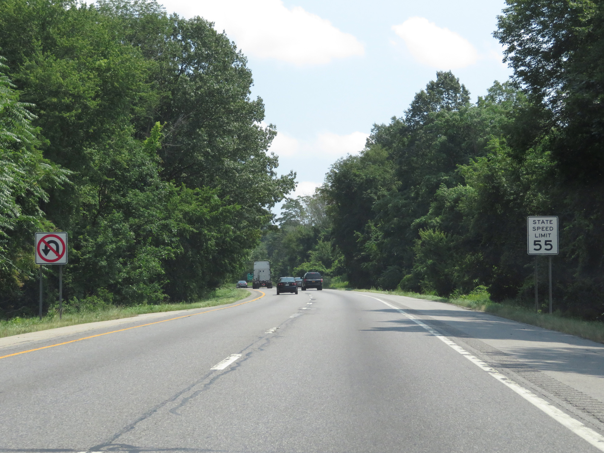 Approaching the Newburgh area, the speed limit decreases to 55 mph. (Photo taken 8/4/17). |
