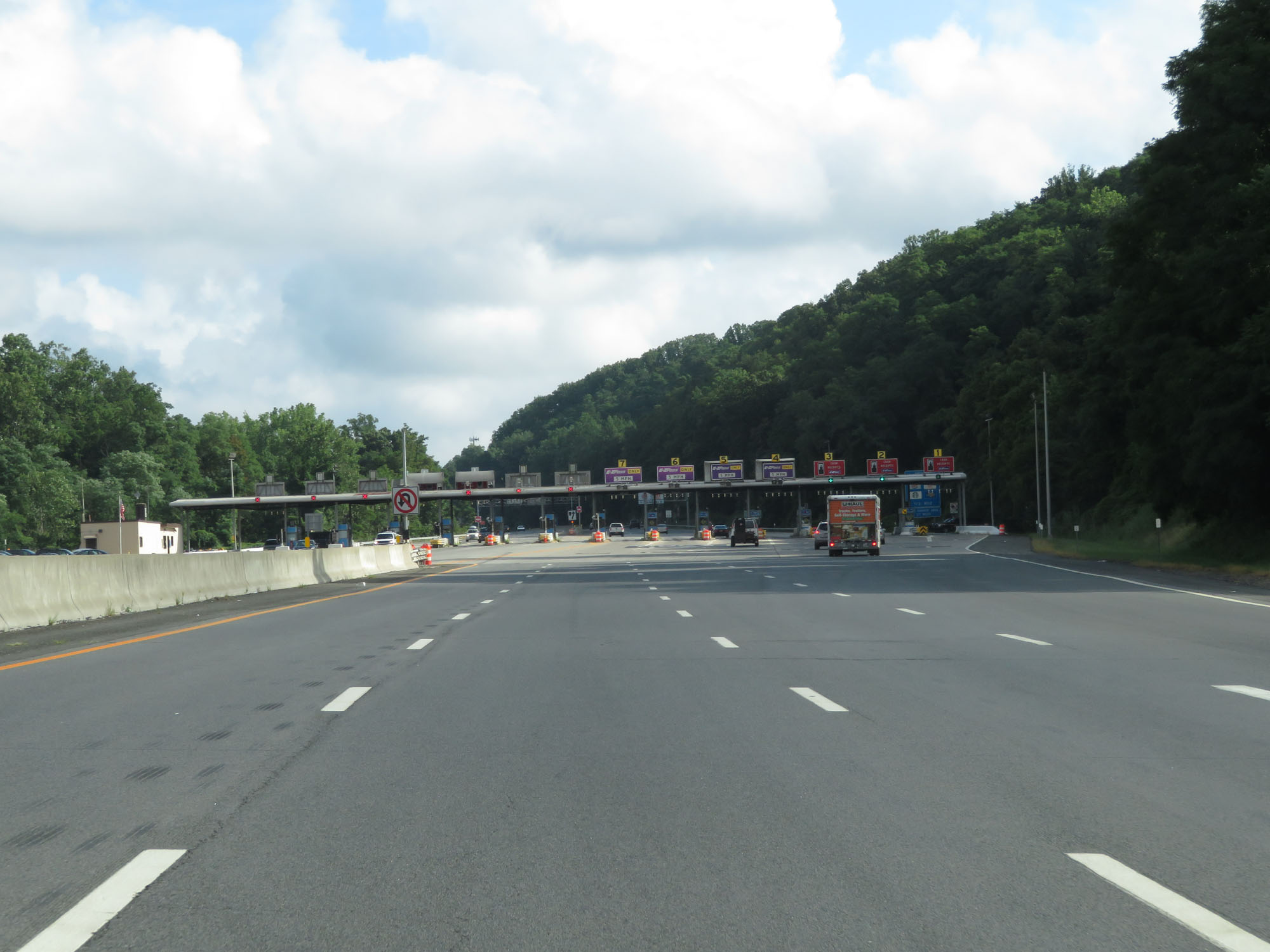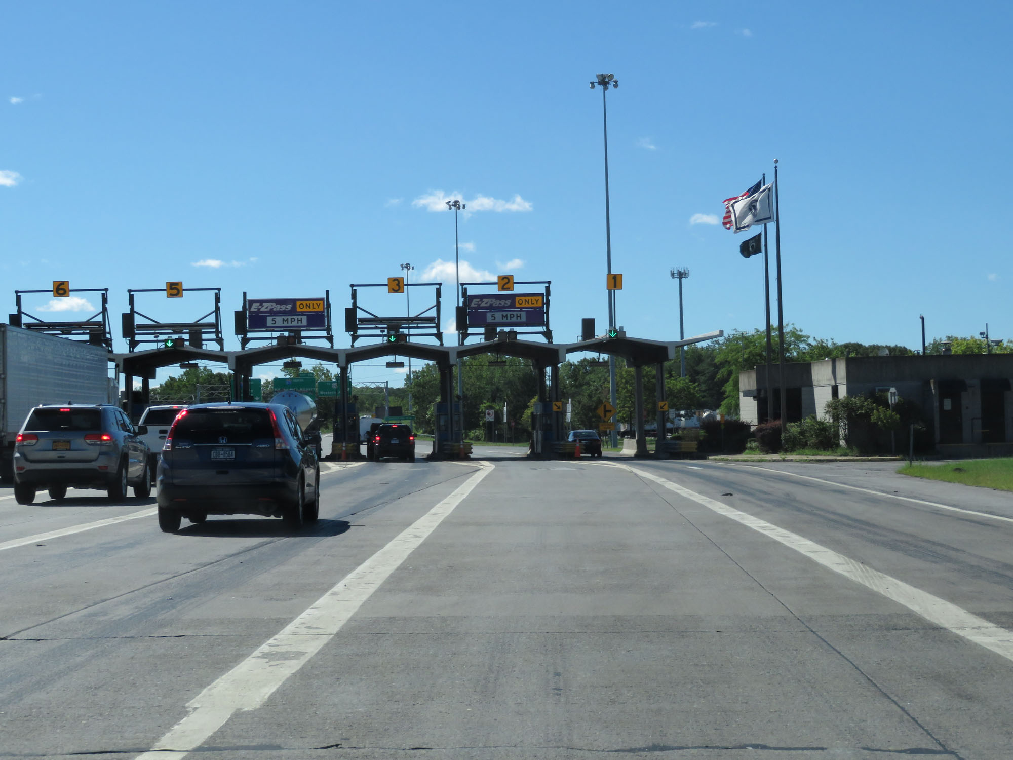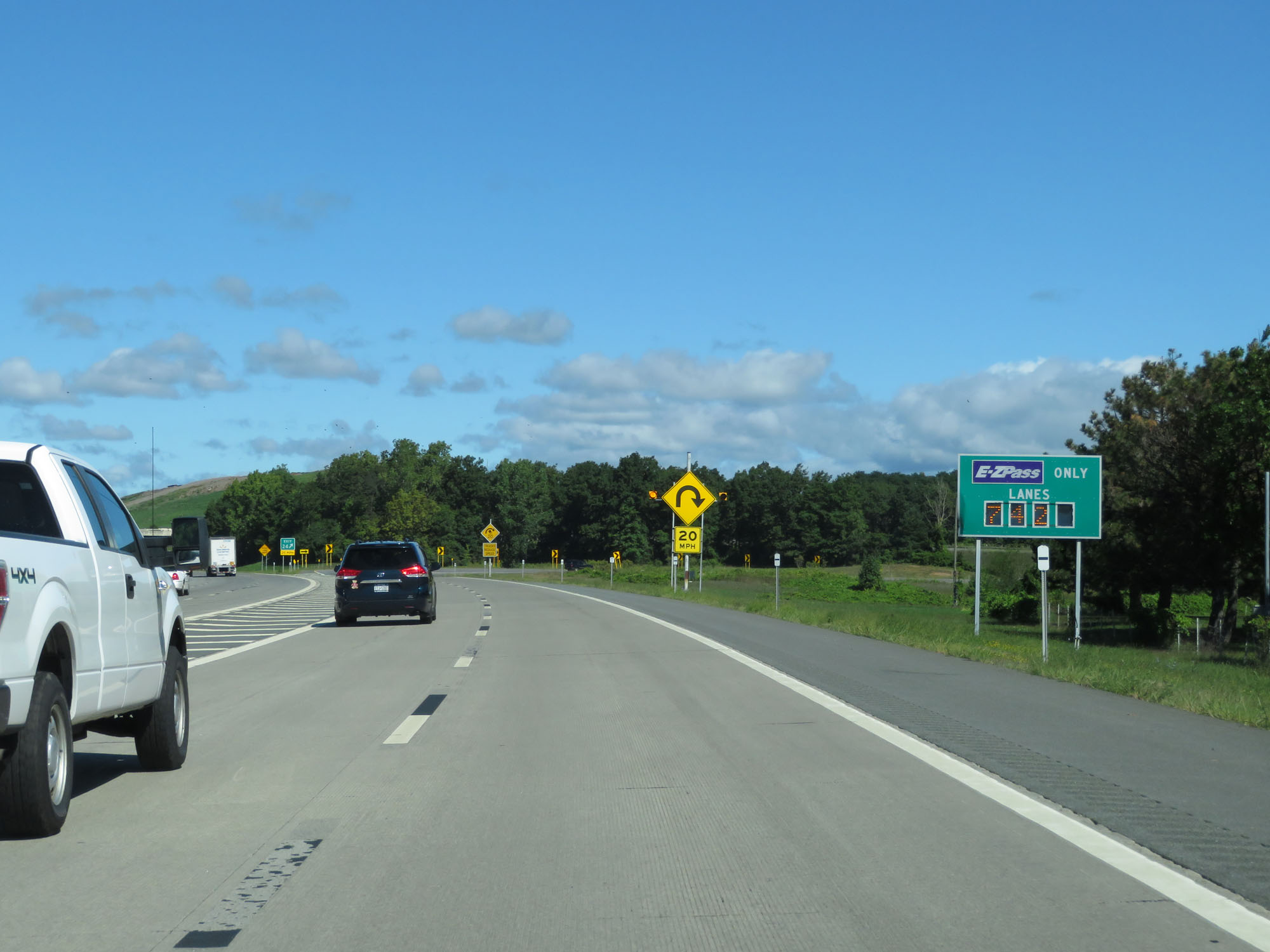 Interstate 87 North at the Exit 24 Toll Plaza, as its NYS Thruway portion comes to an end. Ahead, I-87 will transition into the Adirondack Northway portion which will last the rest of the way to the Canadian border. (Photo taken 8/22/16). |
