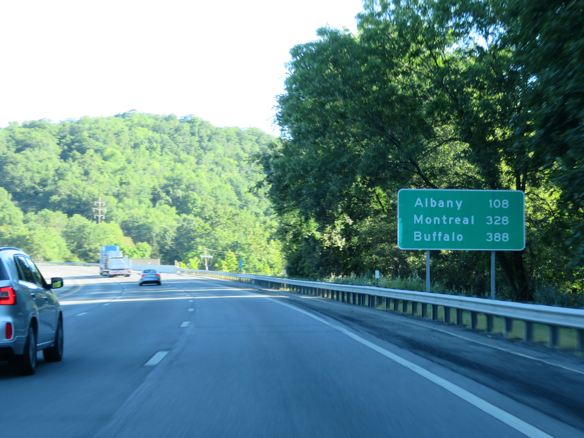 Mileage sign at mile marker 93. It's 49 miles to Albany, 269 miles to Montreal, and 329 miles to Buffalo. (Photo taken 8/22/16). |