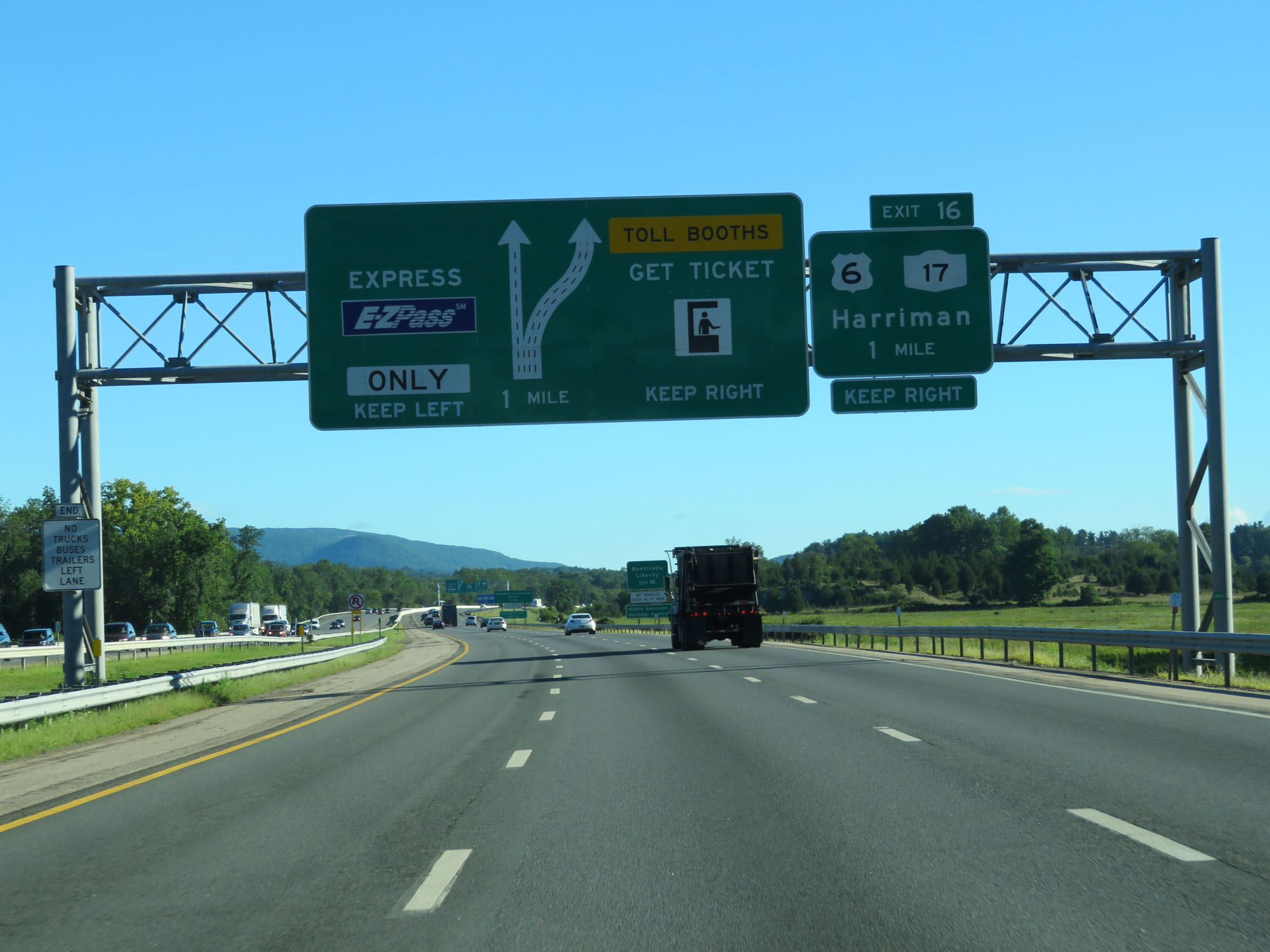 Interstate 87 North (NYS Thruway) approaching Exit 18 - 1 mile. (Photo taken 8/22/16). |