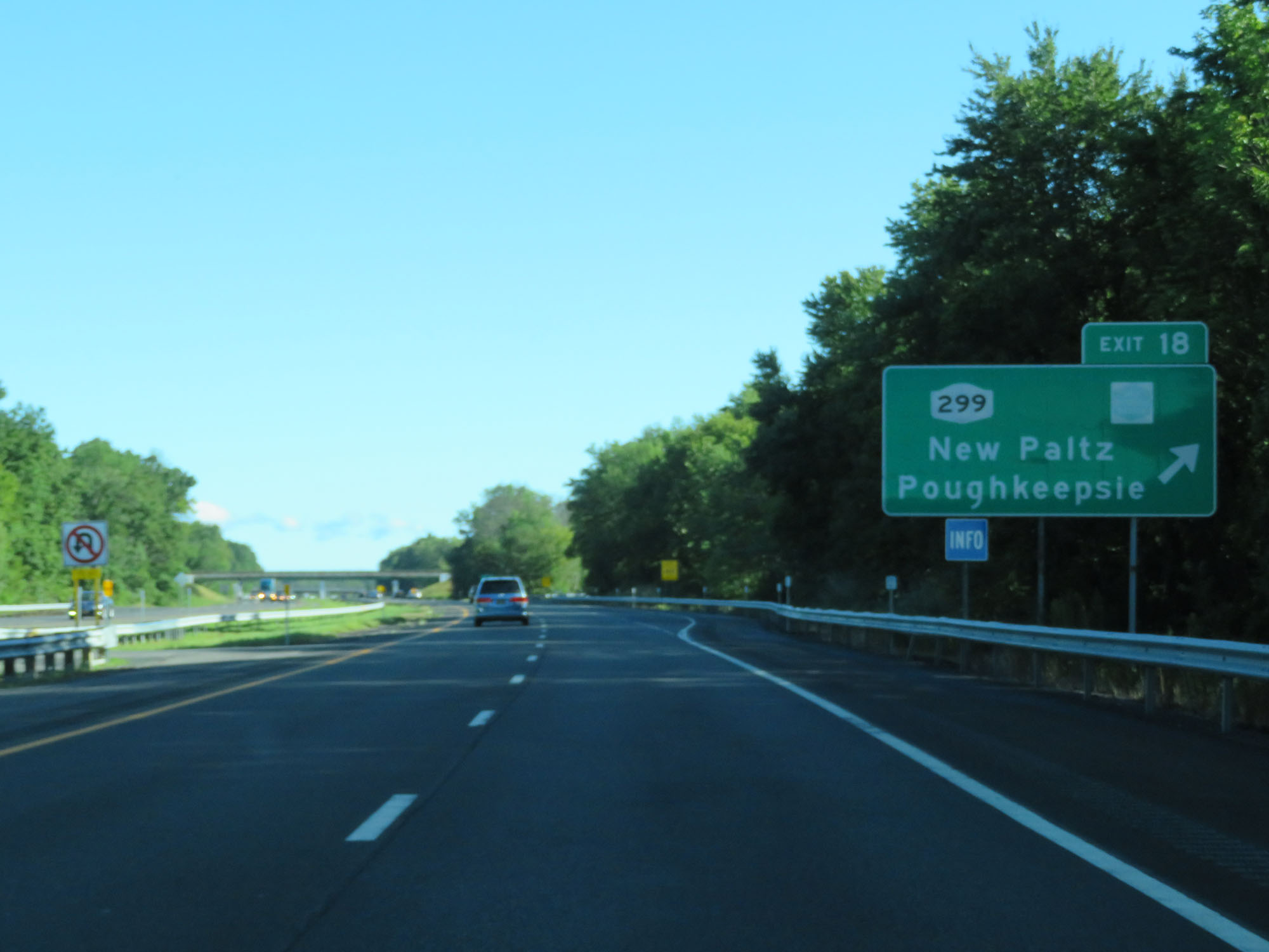Interstate 87 North (NYS Thruway) at Exit 18: NY 299 - New Paltz / Poughkeepsie (Photo taken 8/22/16). |