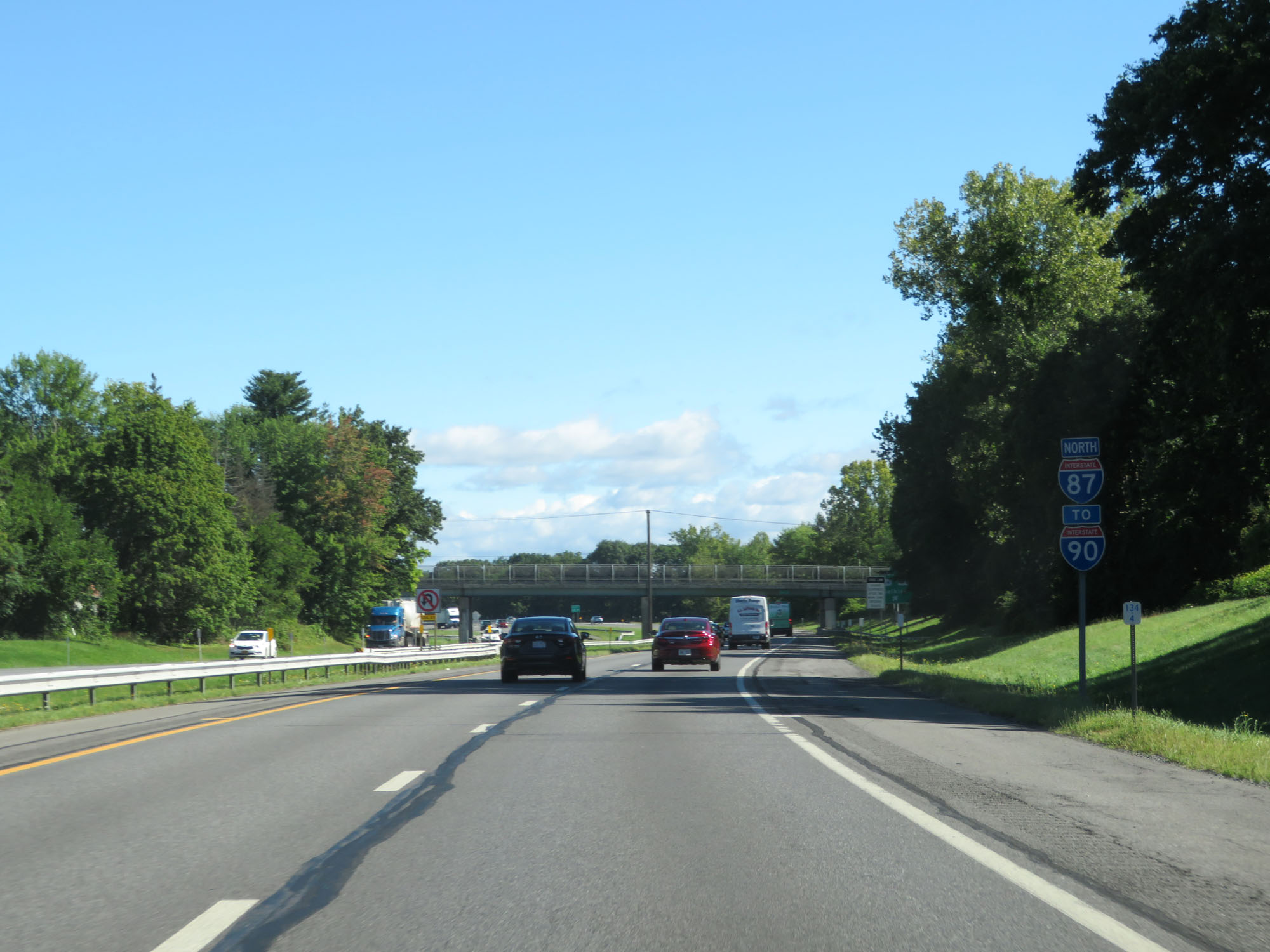 Interstate 87 North reassurance shield with a TO Interstate 90 shield under it. (Photo taken 8/22/16). |