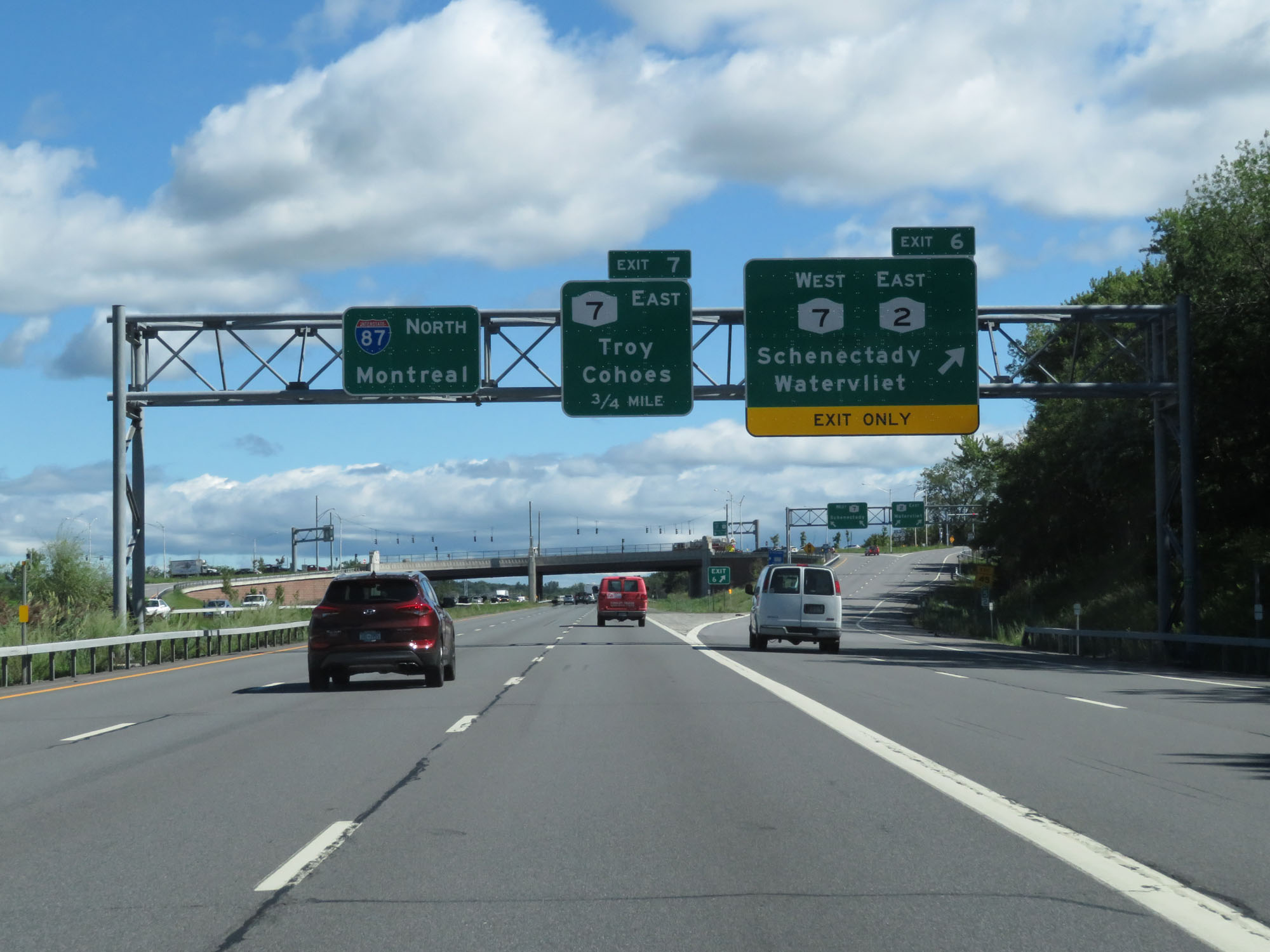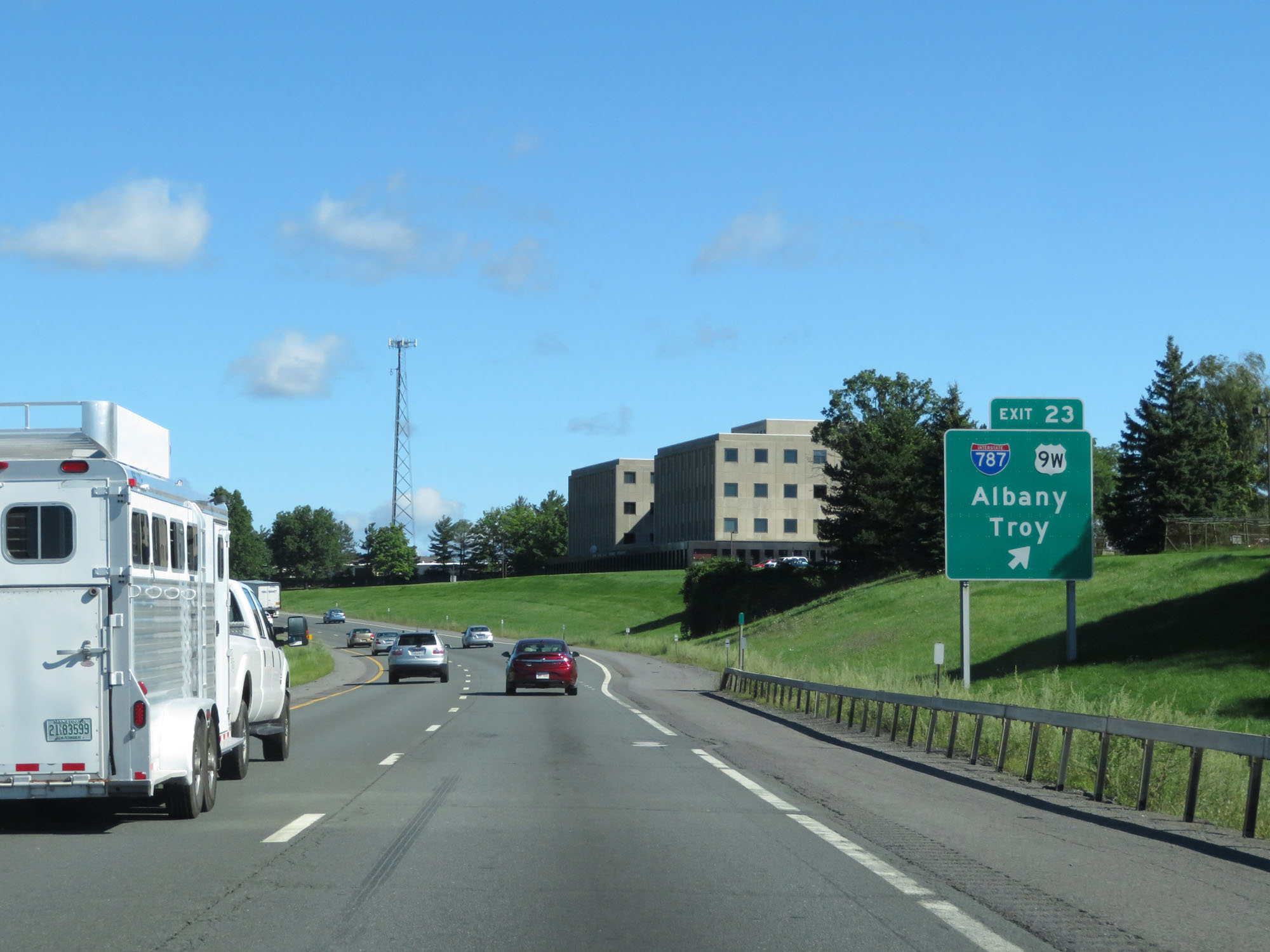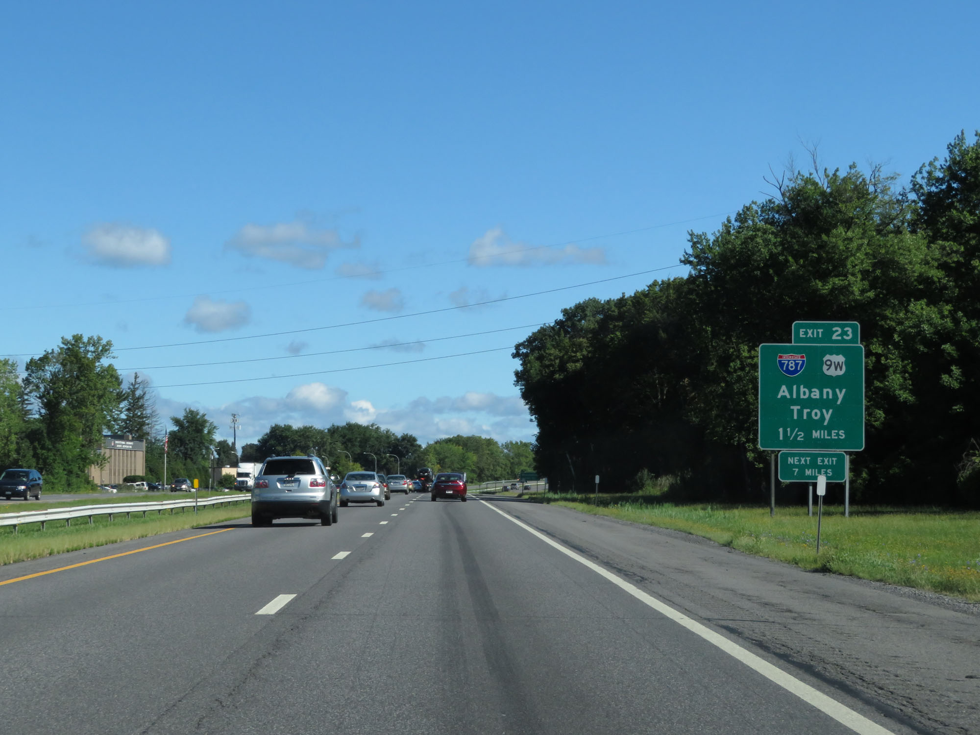 Interstate 87 North (NYS Thruway) at Exit 23: Interstate 787 / US 9W - Albany / Troy (Photo taken 8/22/16). |