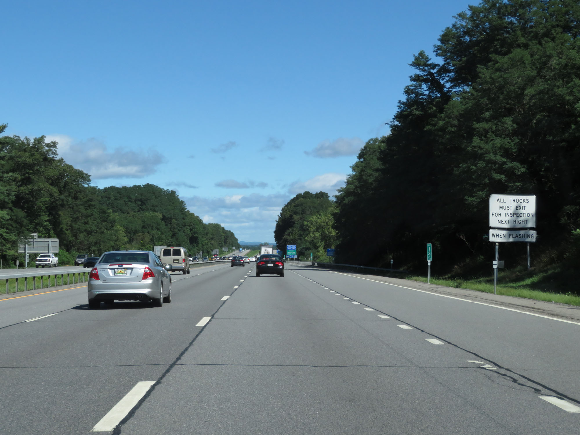 Interstate 87 North (NYS Thruway) at the Parking Area / Text Stop / Truck Inspection Area in Ulster County. (Photo taken 8/22/16). |