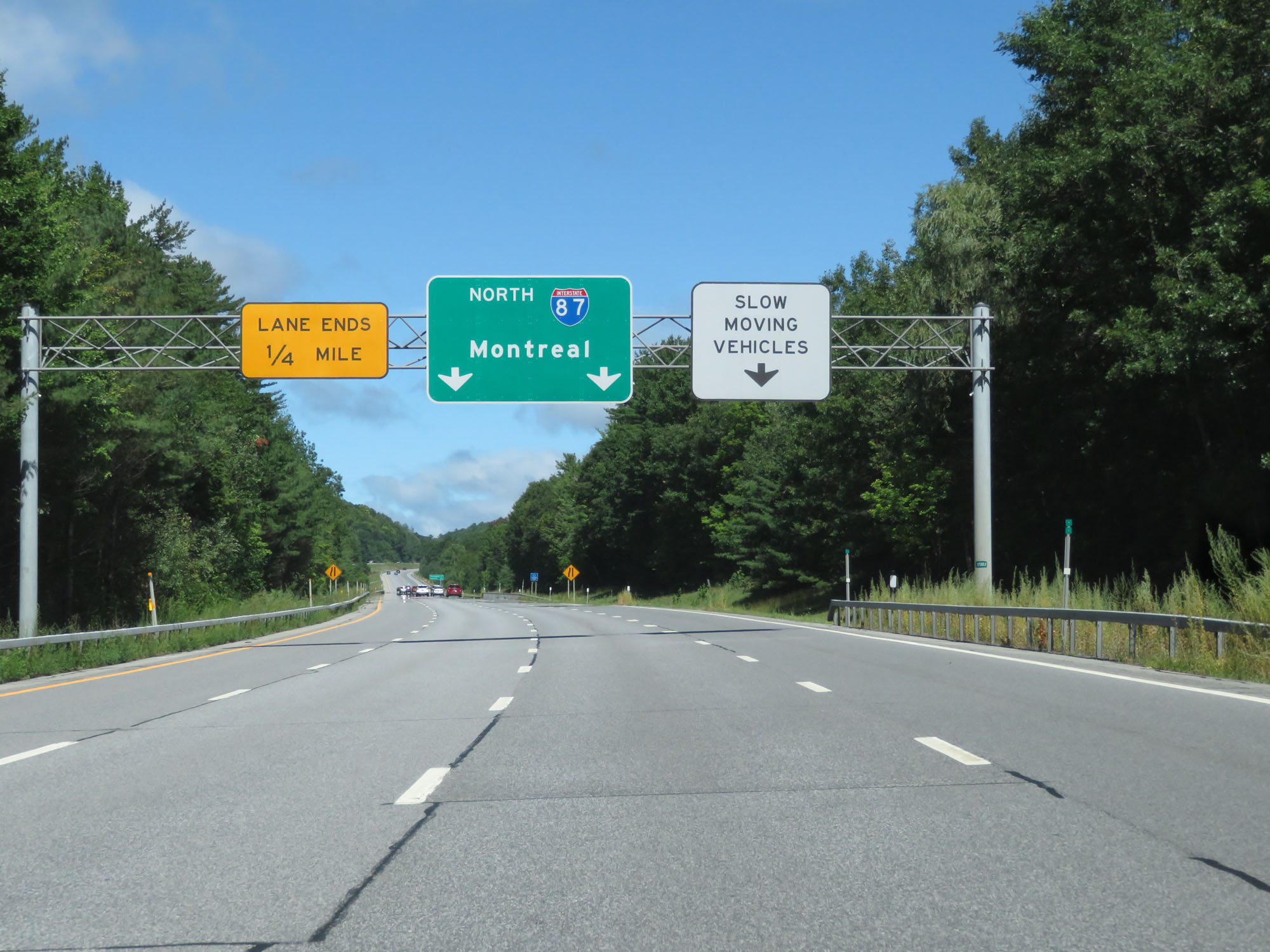 Interstate 87 North (NYS Thruway) at Exit 24: Interstate 87 North / Interstate 90 East - Albany / Montreal (Photo taken 8/22/16). |