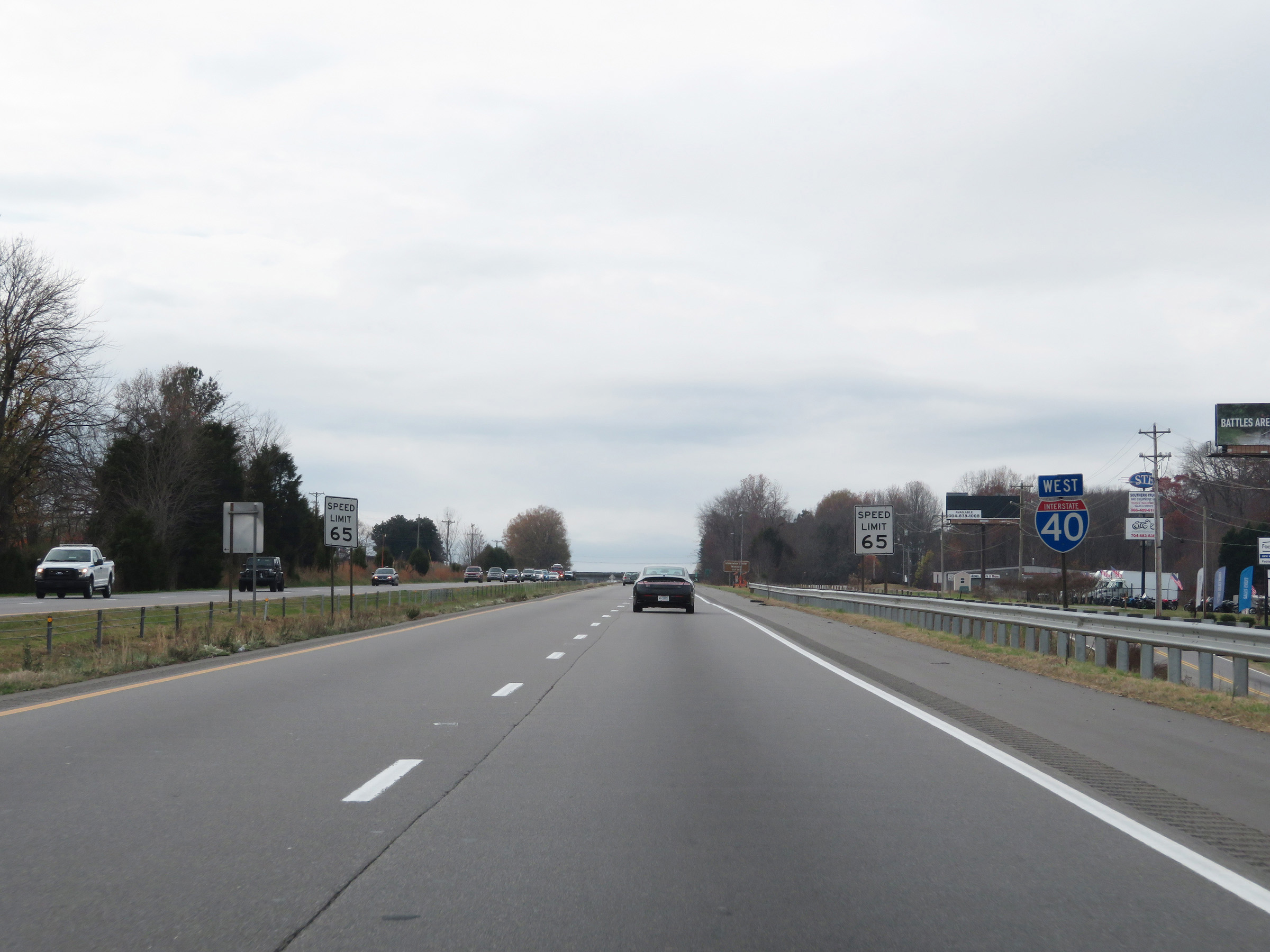 West of Exit 100, the speed limit finally increases to 70 mph on Interstate 40 West. (Photo taken 12/5/20). |