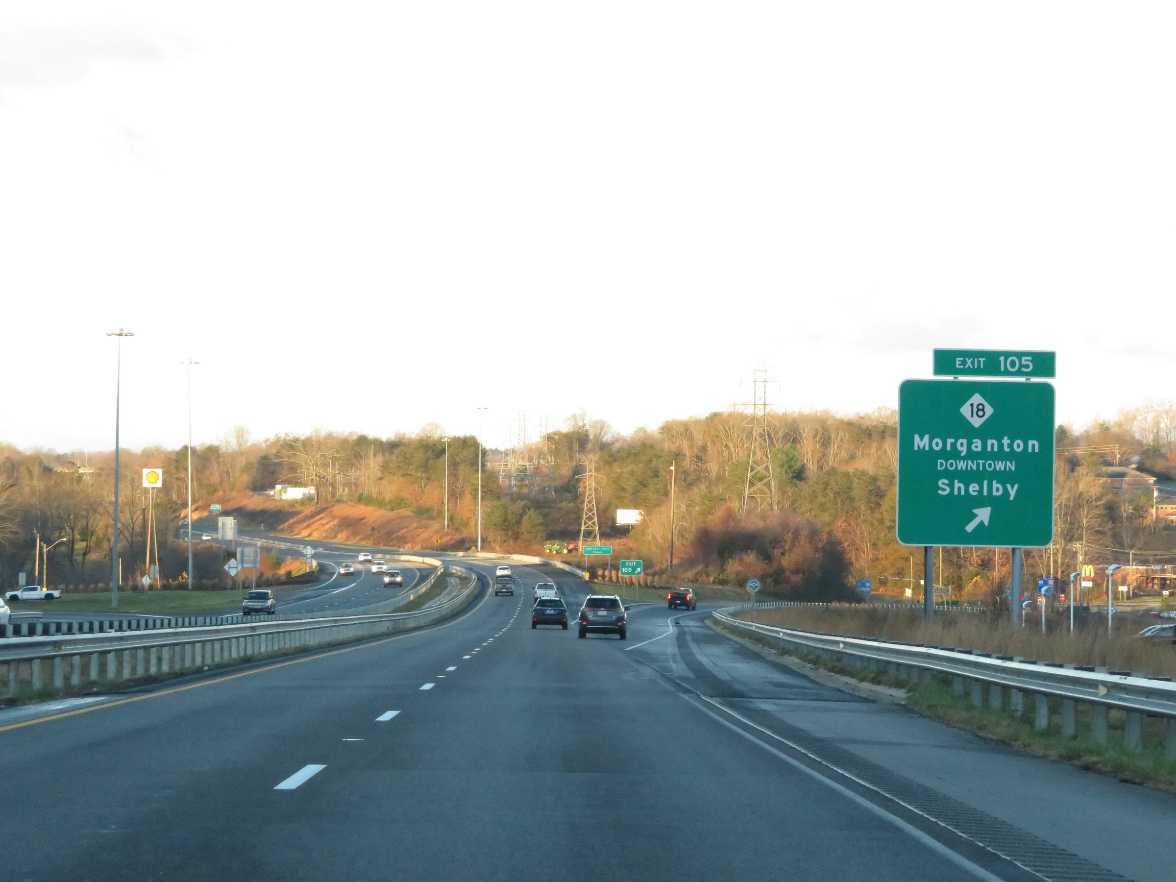Interstate 40 West at Exit 90: Nebo / Lake James (Photo taken 12/5/20). |