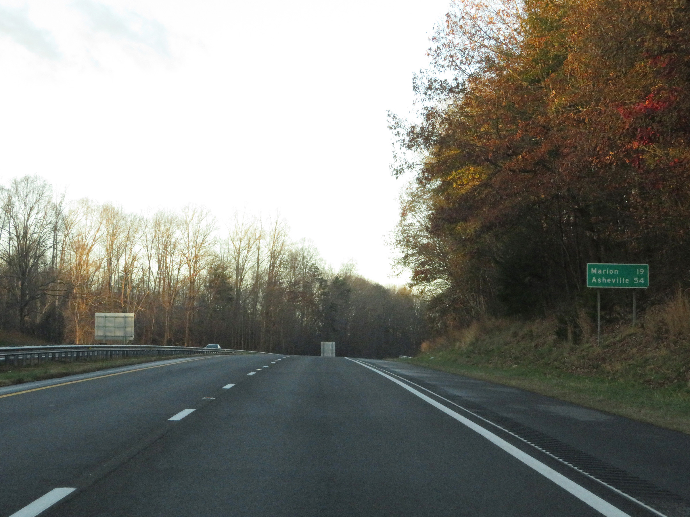 Interstate 40 West at Exit 85: US 221 - Marioin / Rutherfordton (Photo taken 12/5/20). |