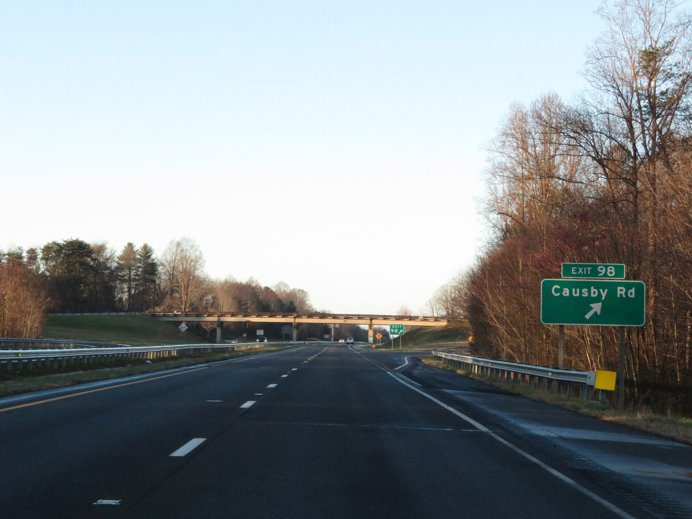 Interstate 40 West at Exit 98: Causby Rd (Photo taken 12/5/20). |