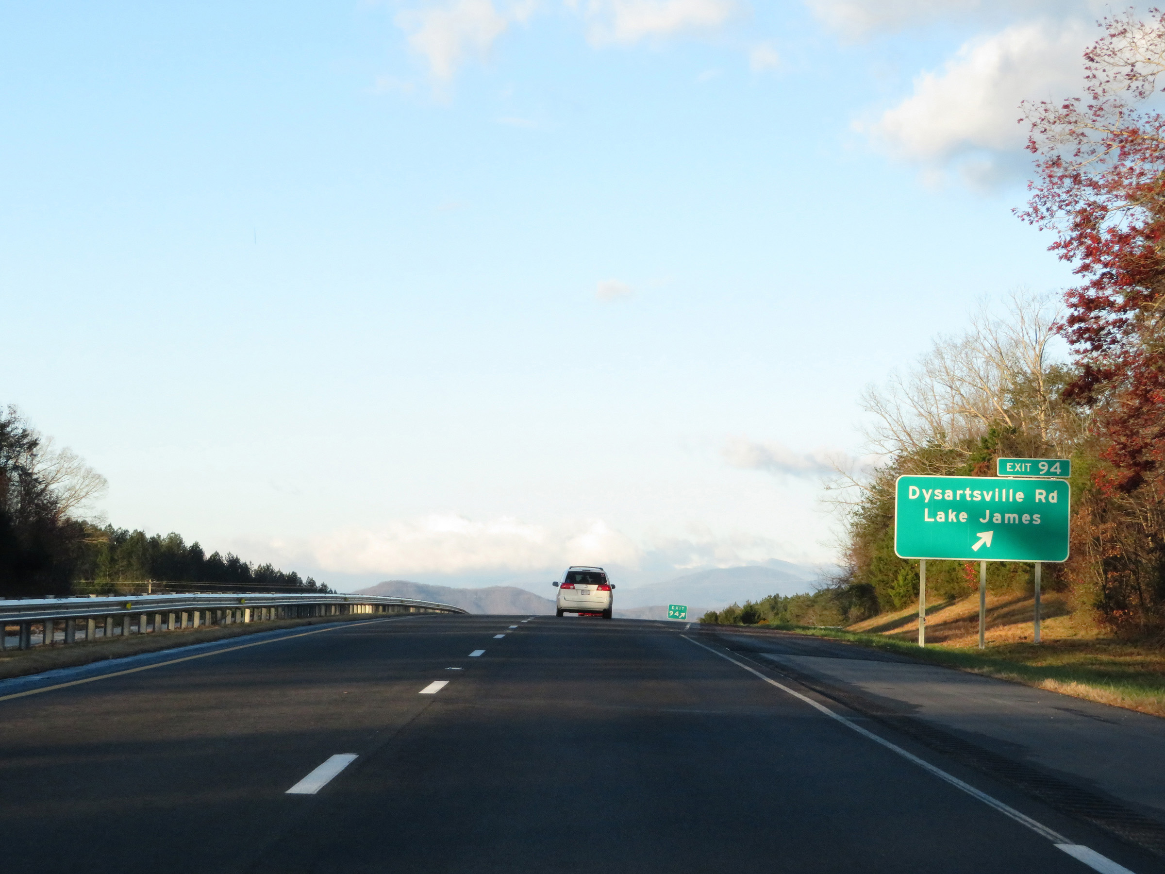 Interstate 40 West at Exit 94: Dysartsville Rd / Lake James (Photo taken 12/5/20). |