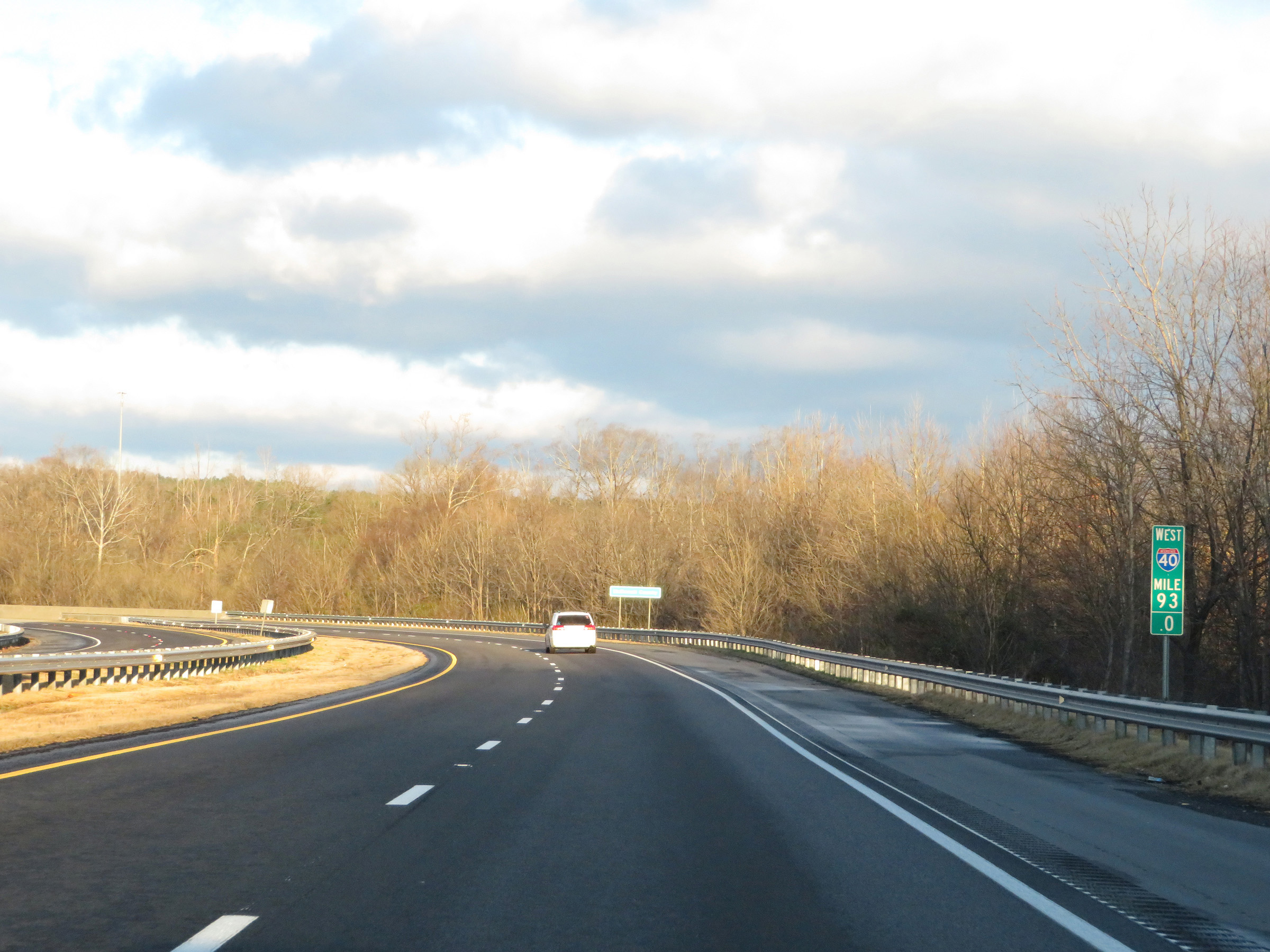 The truck climbing lane comes to an end as Interstate 40 West begins to desend Old Fort Mountain. (Photo taken 12/5/20). |