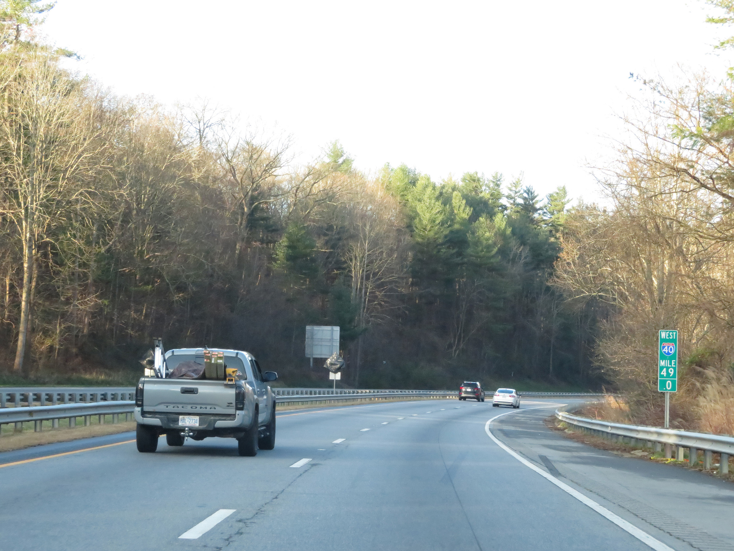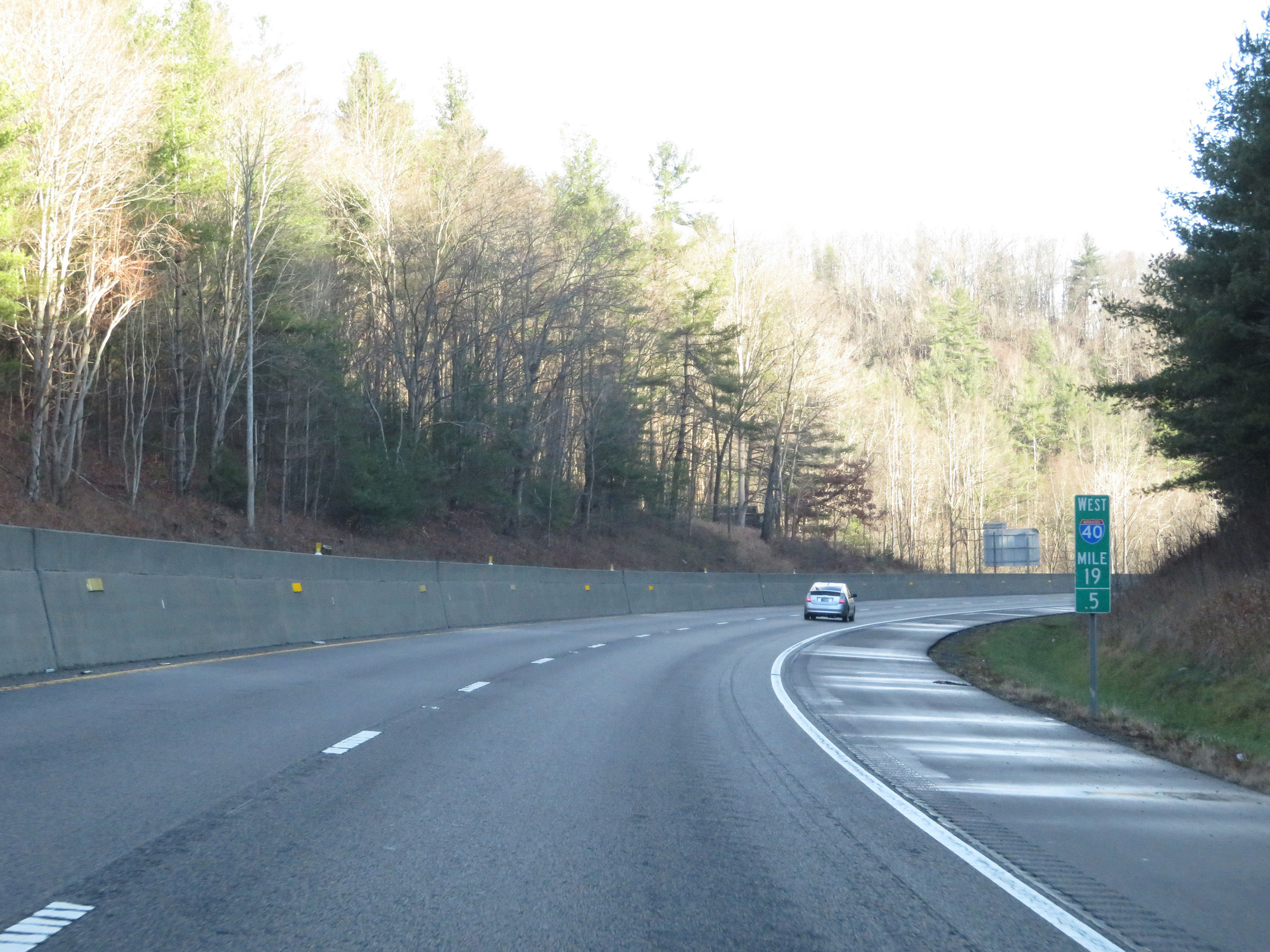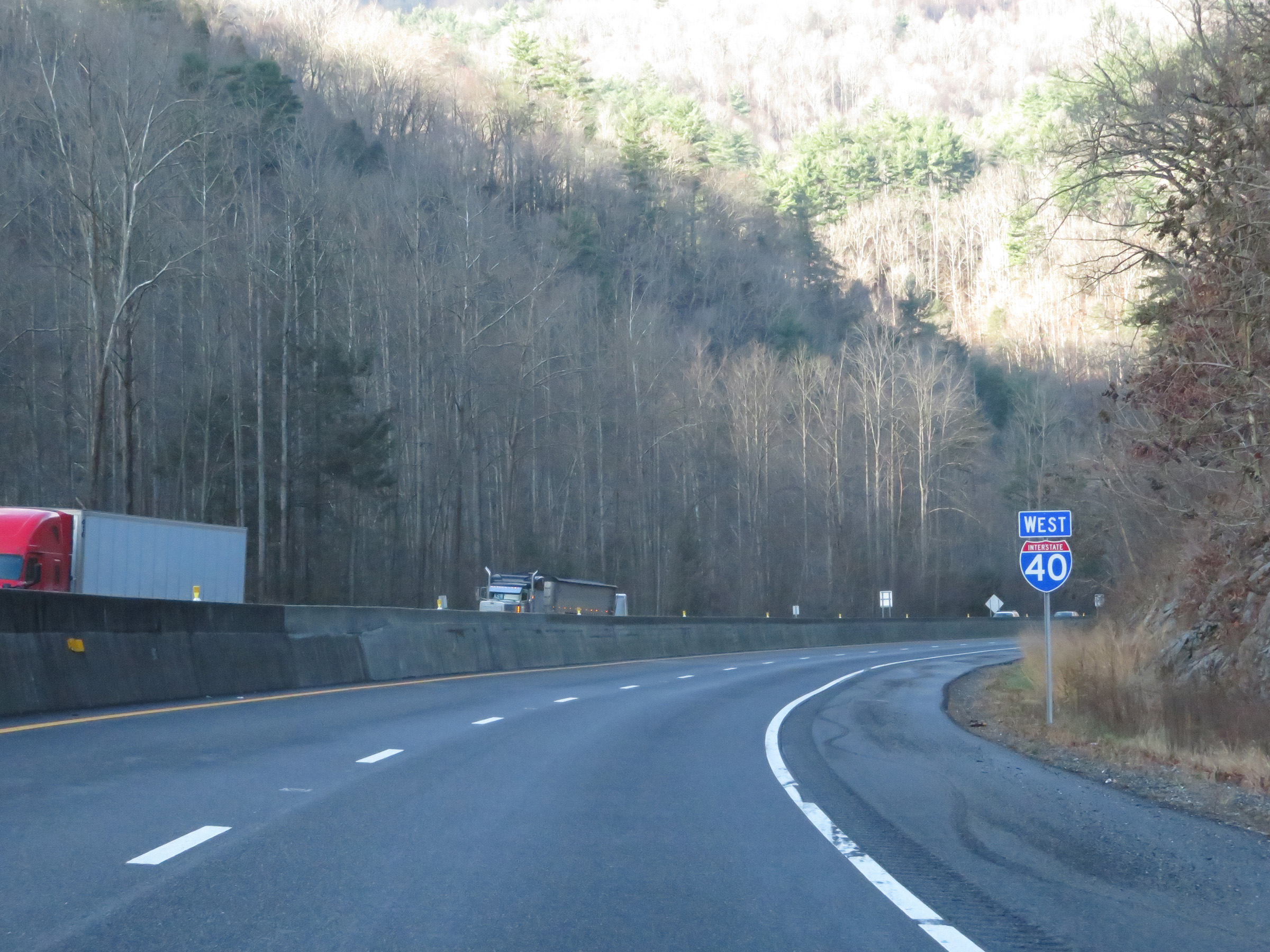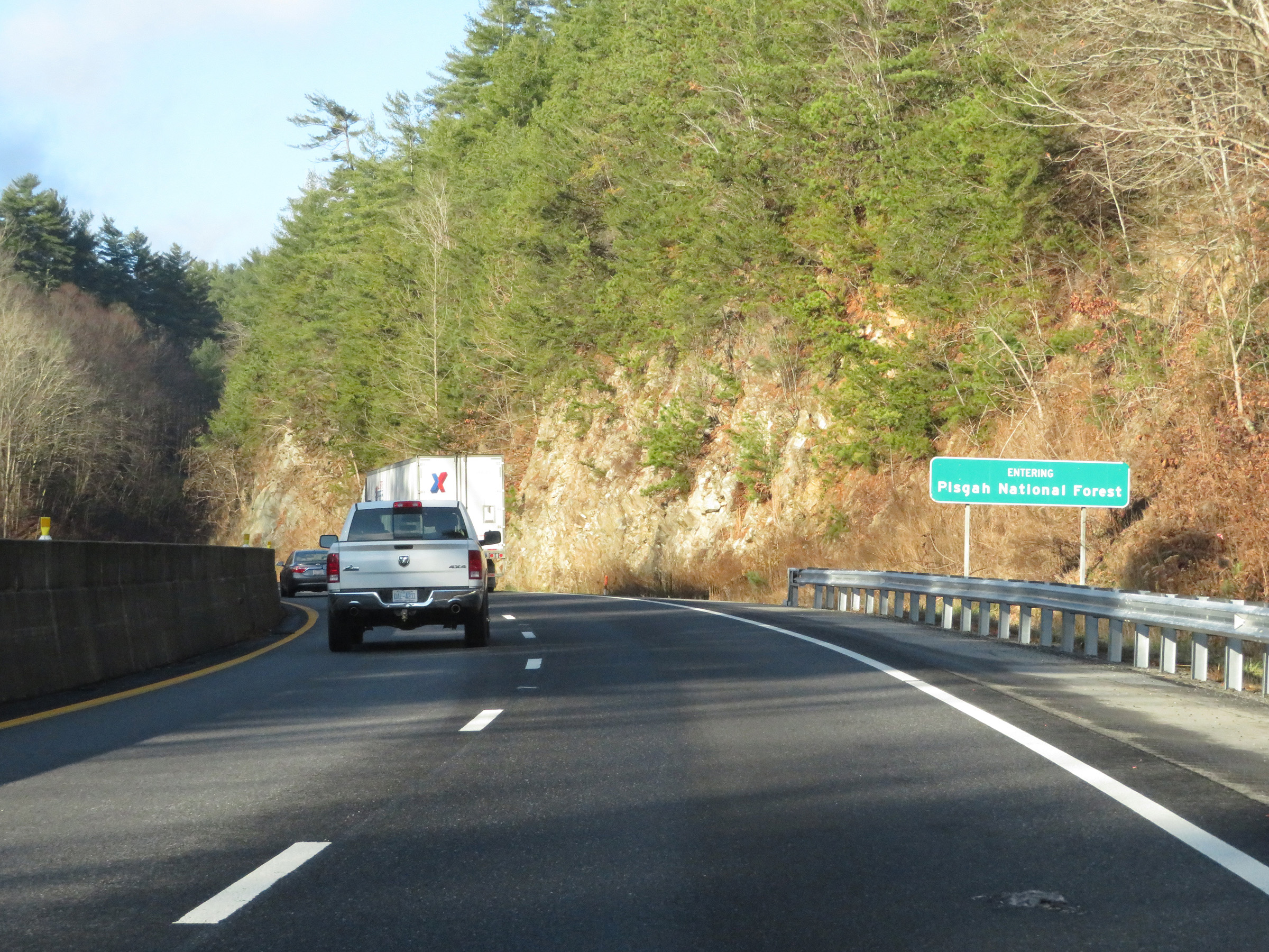 As it approaches the summit of Old Fort Mountain, Interstate 40 West leaves Pisgah National Forest. (Photo taken 12/5/20). |