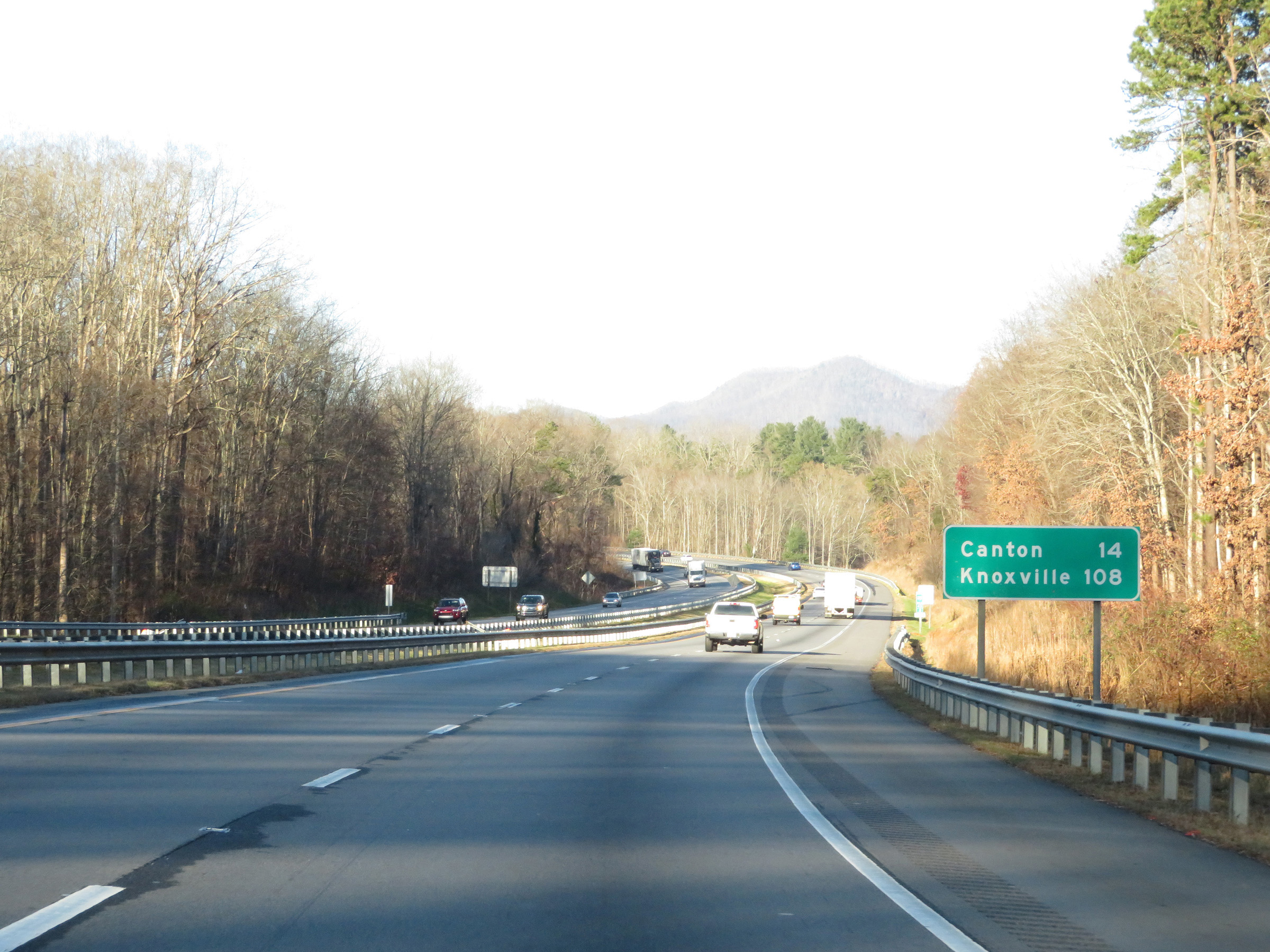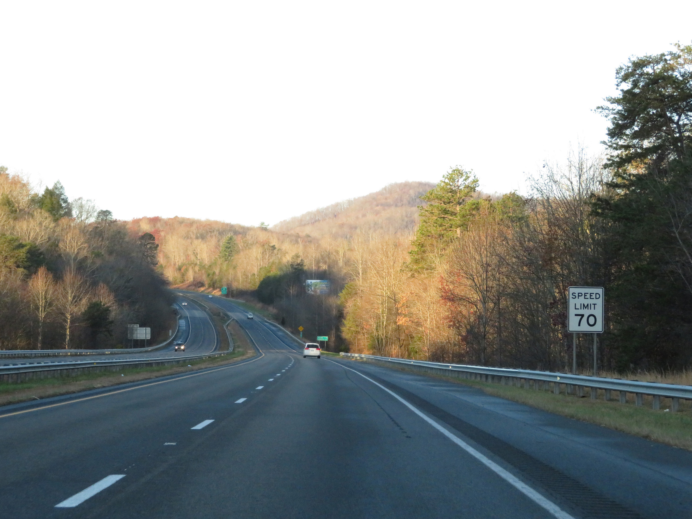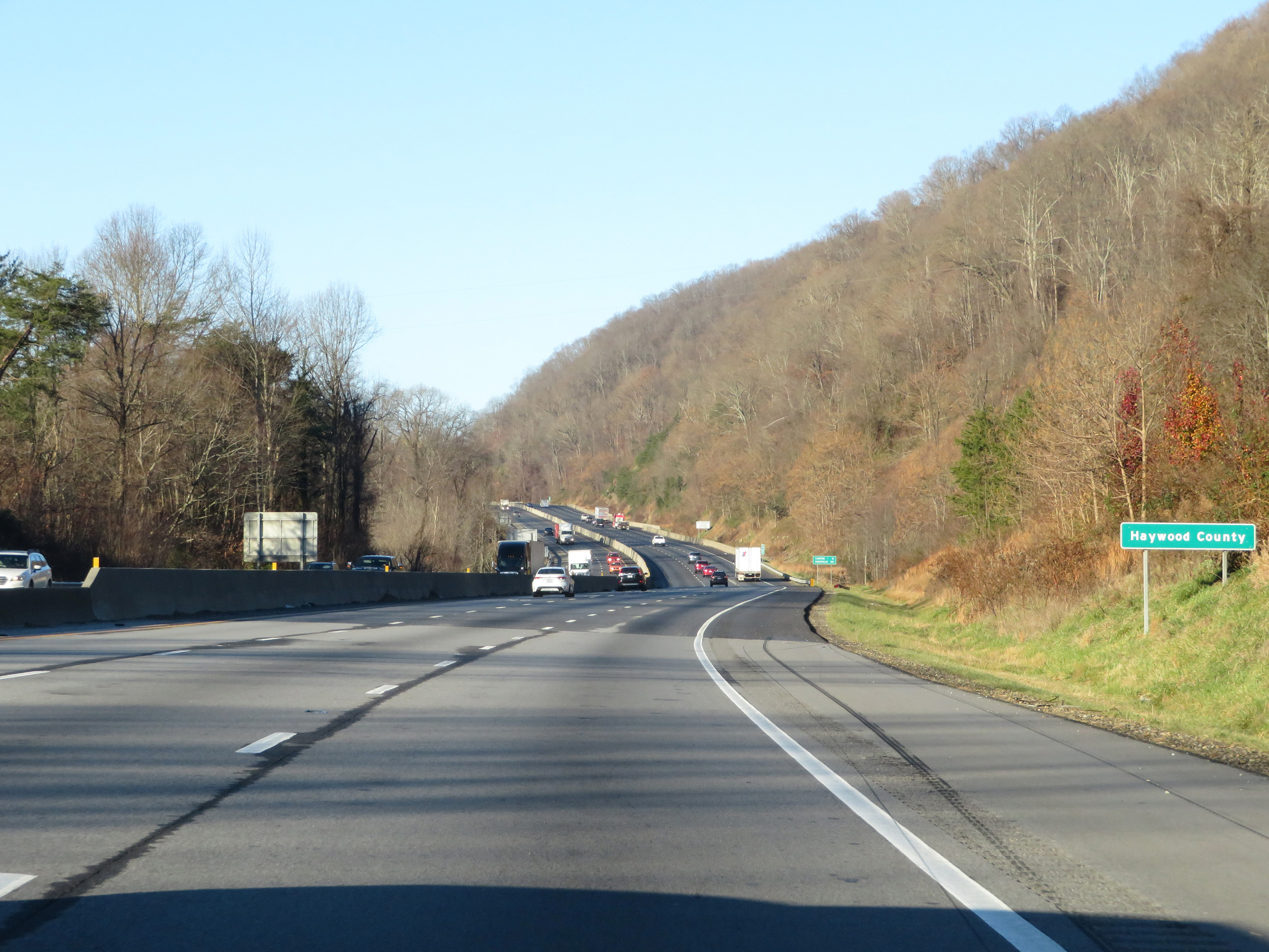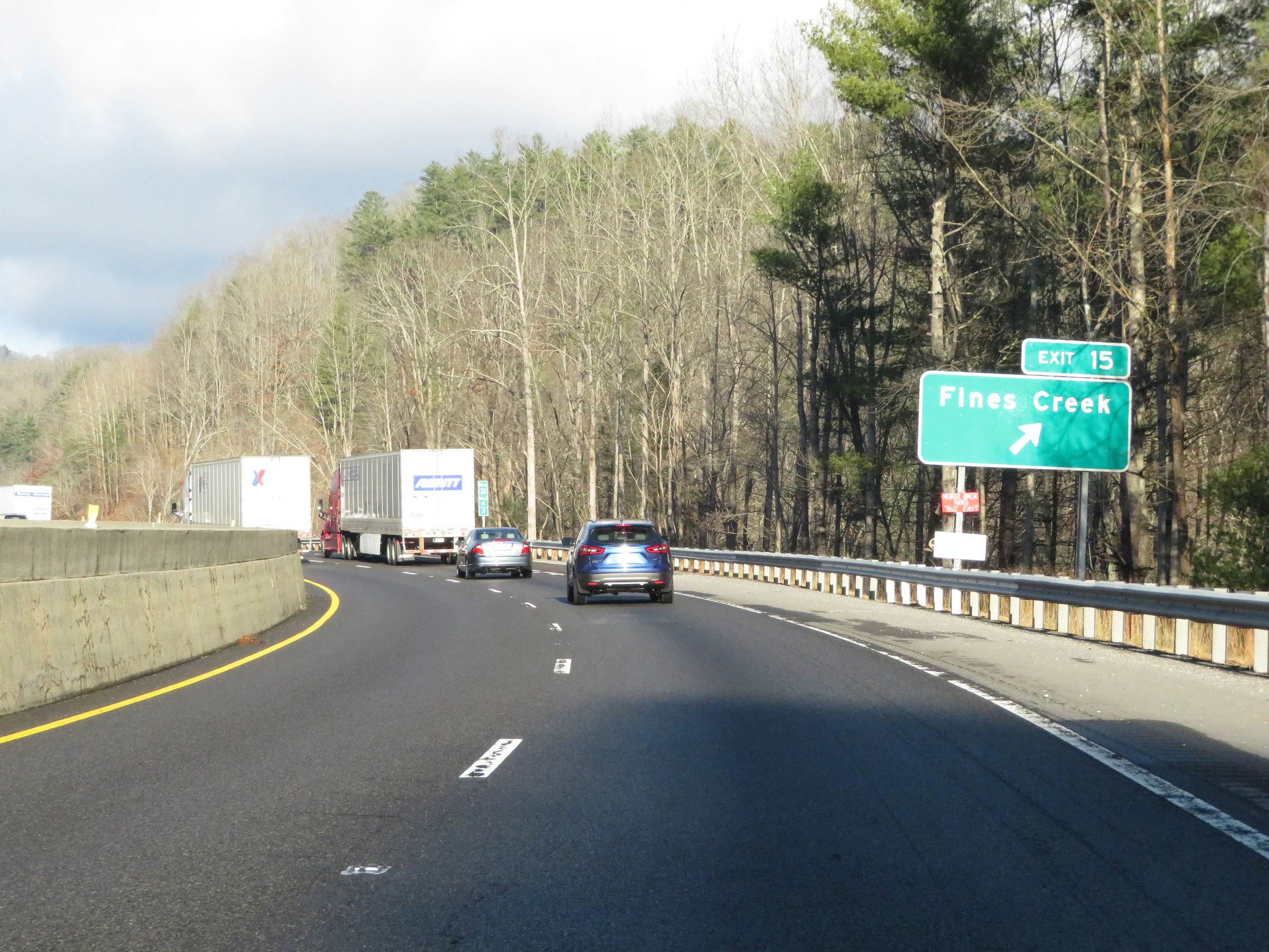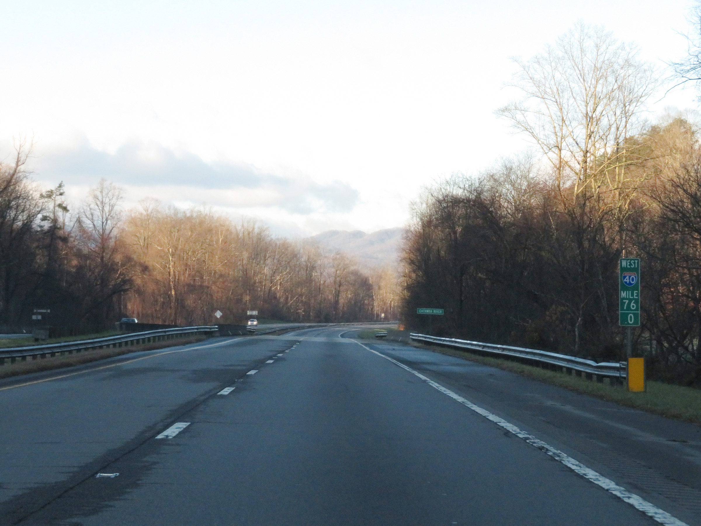 As it approaches the summit of Old Fort Mountain, Interstate 40 West leaves Pisgah National Forest. (Photo taken 12/5/20). |