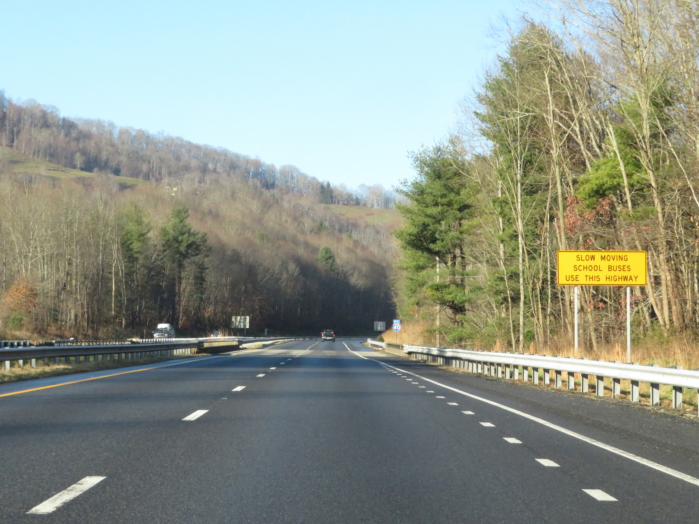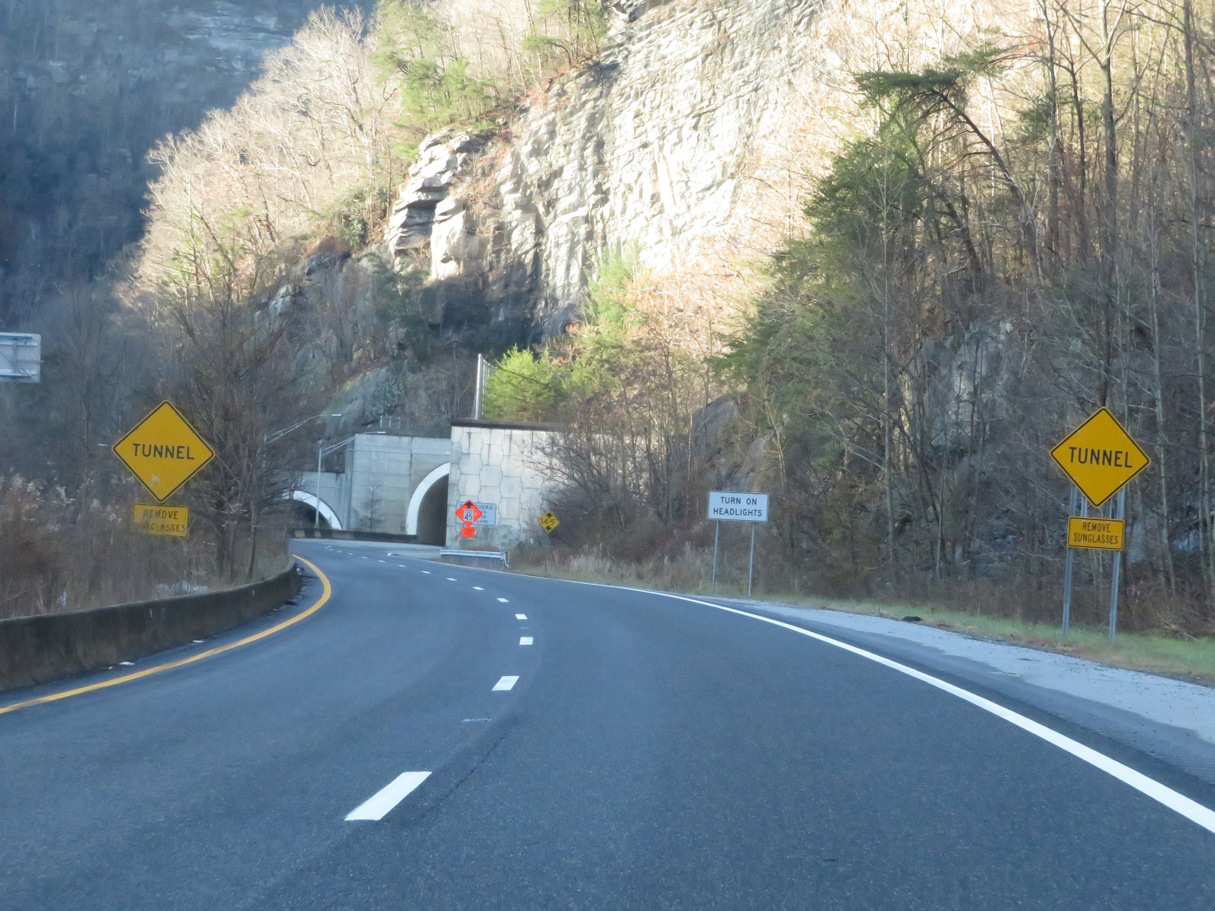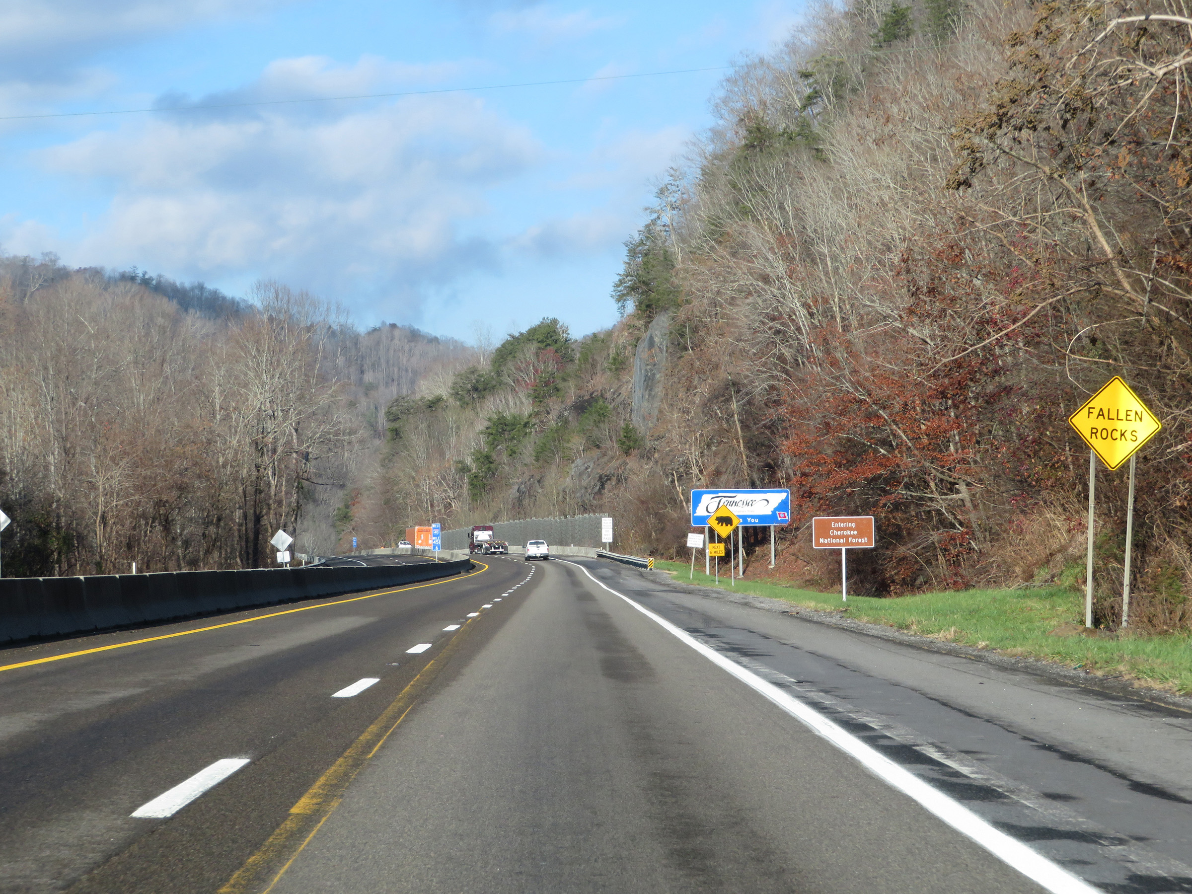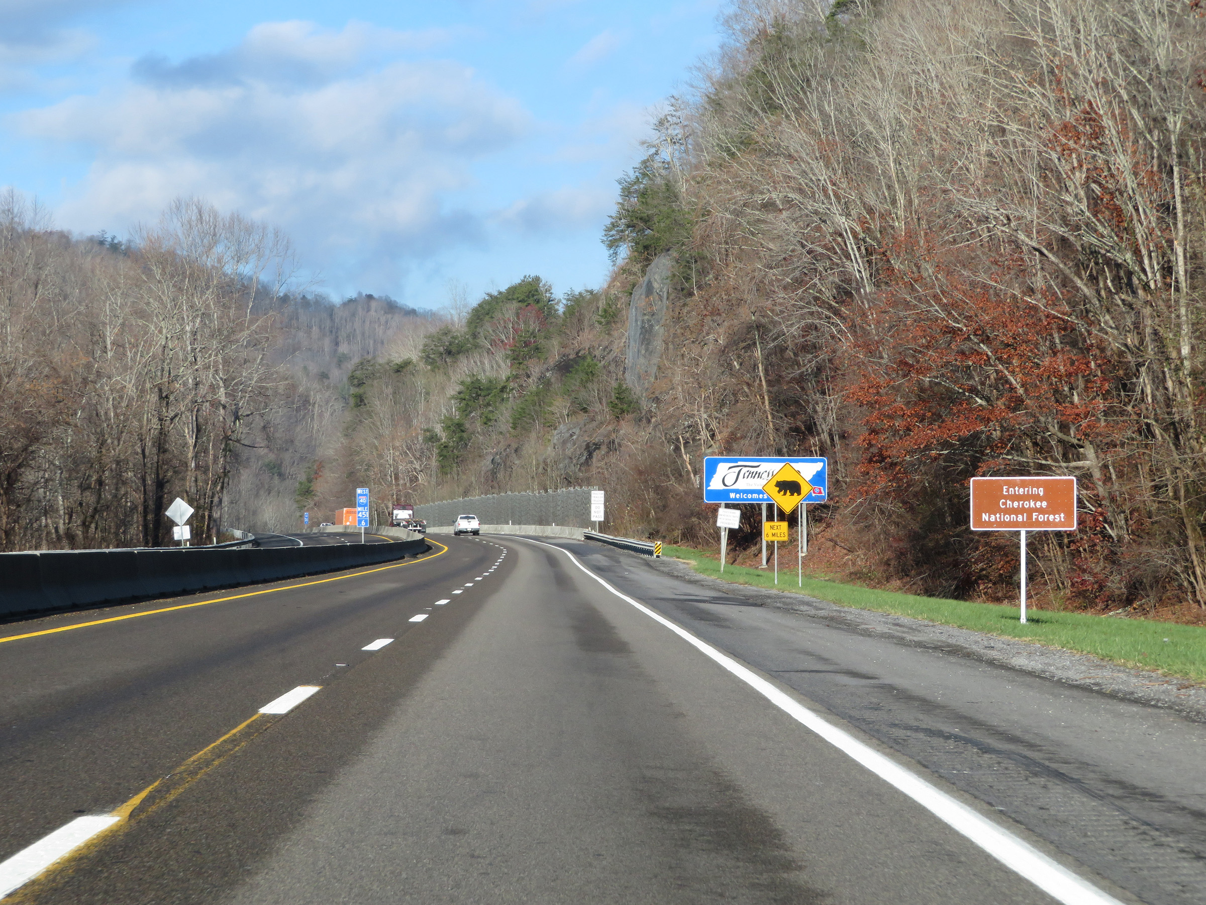 As it approaches the summit of Old Fort Mountain, Interstate 40 West leaves Pisgah National Forest. (Photo taken 12/5/20). |
