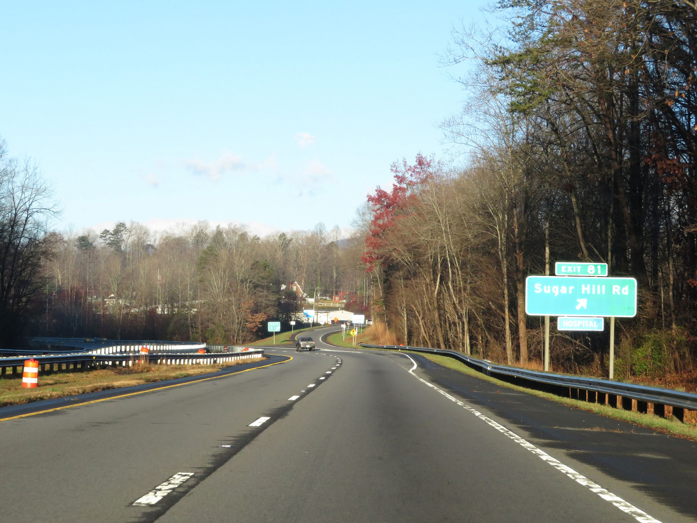 Interstate 40 West at Exit 81: Sugar Hill Rd (Photo taken 12/5/20). |